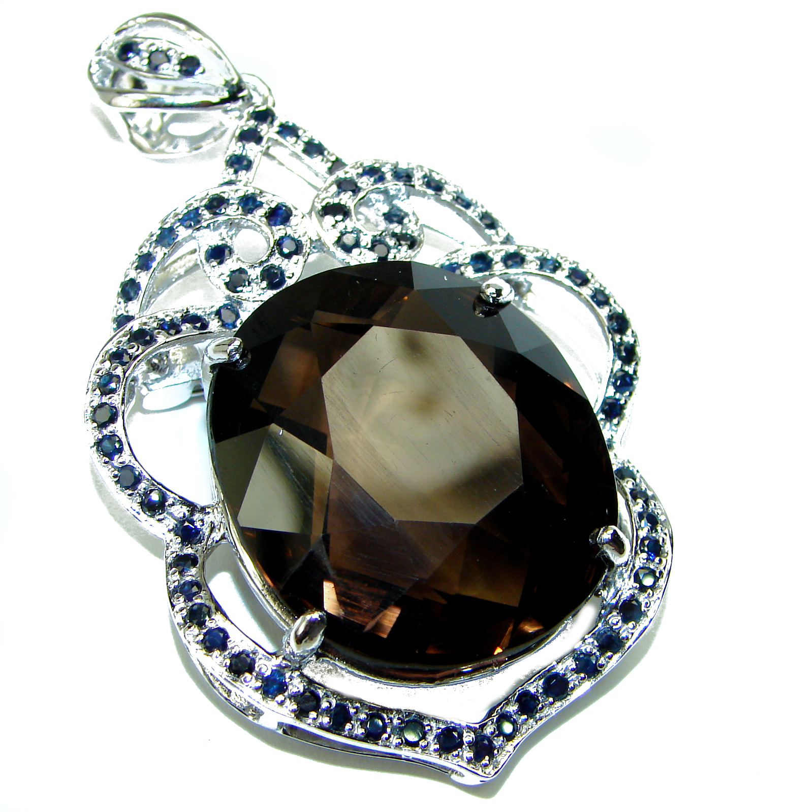 Vintage Style Beauty 55.2 carat Smoky Topaz .925 Sterling Silver handmade Pendant Brooch