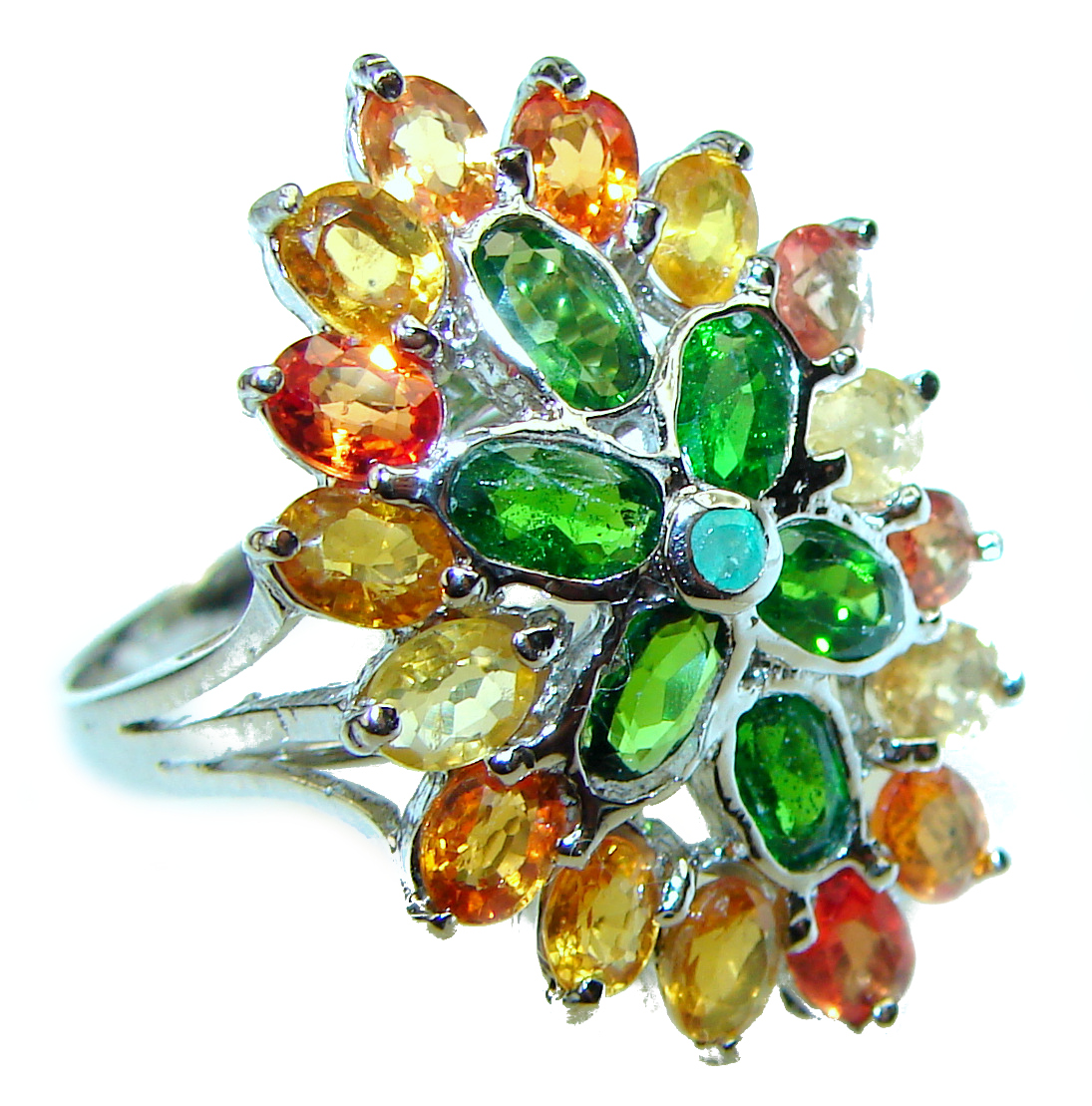 Natural Tourmaline Chrome Diopside .925 Sterling Silver handmade ring s. 9