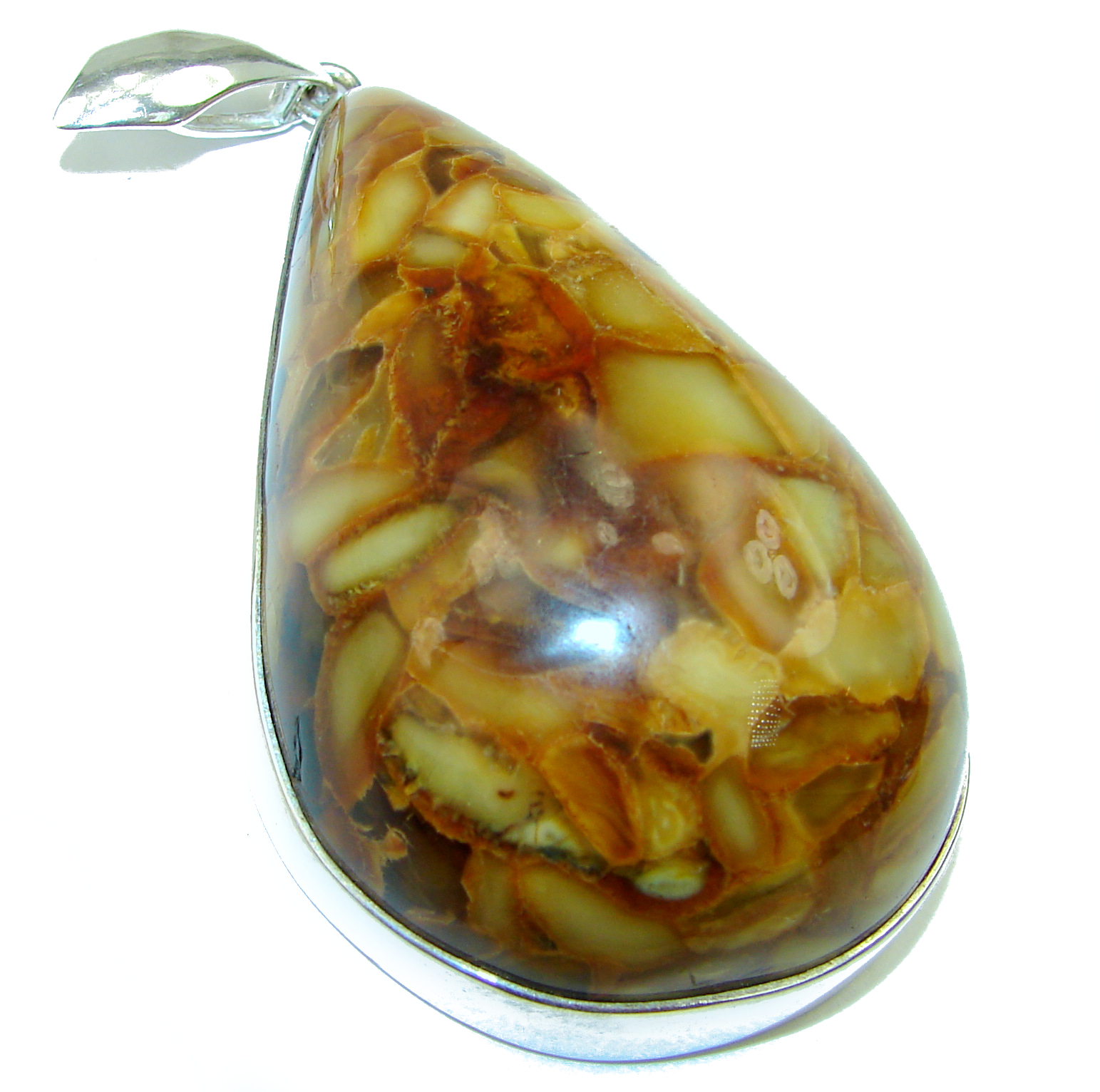 Large Natural Baltic Amber .925 Sterling Silver handmade Pendant