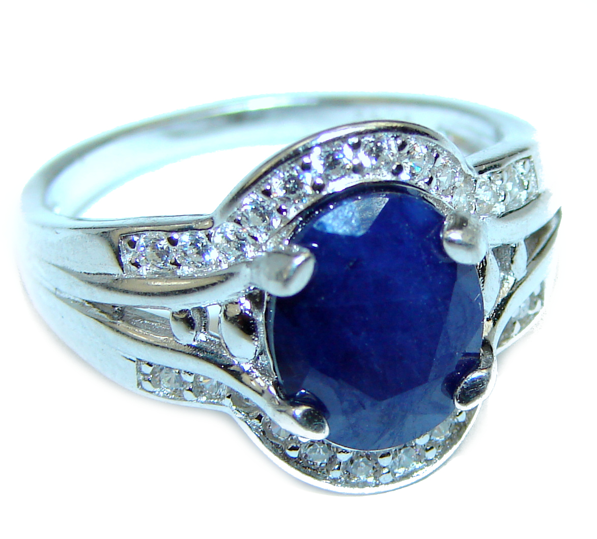 Blue Treasure 8.5 carat authentic Sapphire .925 Sterling Silver Statement Ring size 8