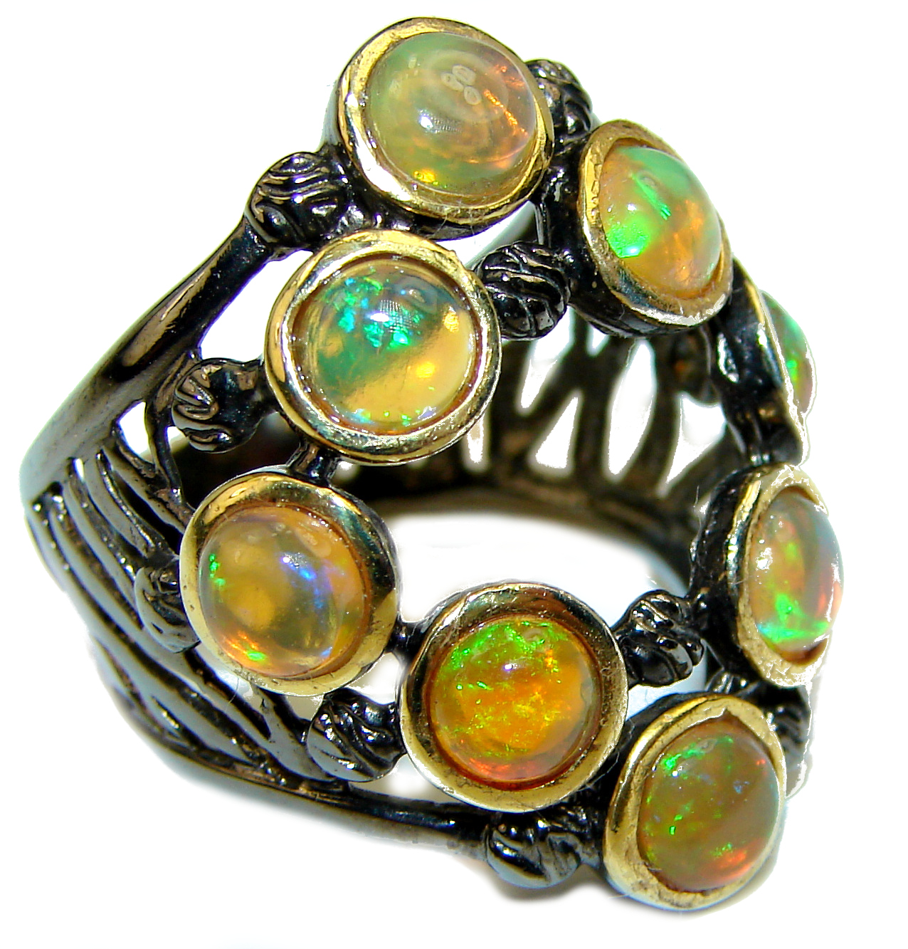 Vintage Design 10.2ctw Genuine Ethiopian Opal black rhodium over .925 Sterling Silver handmade Ring size 7