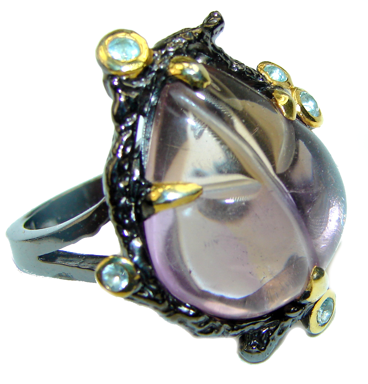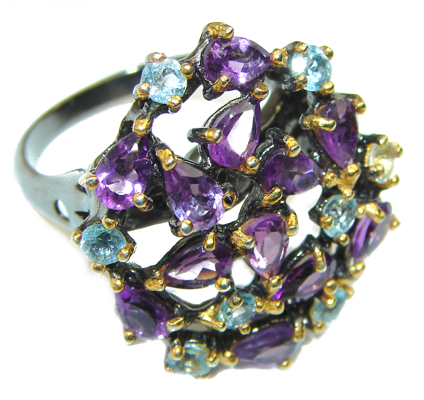 Autehntic Amethyst aquamarine .925 Sterling Silver Handcrafted Ring size 8 3/4
