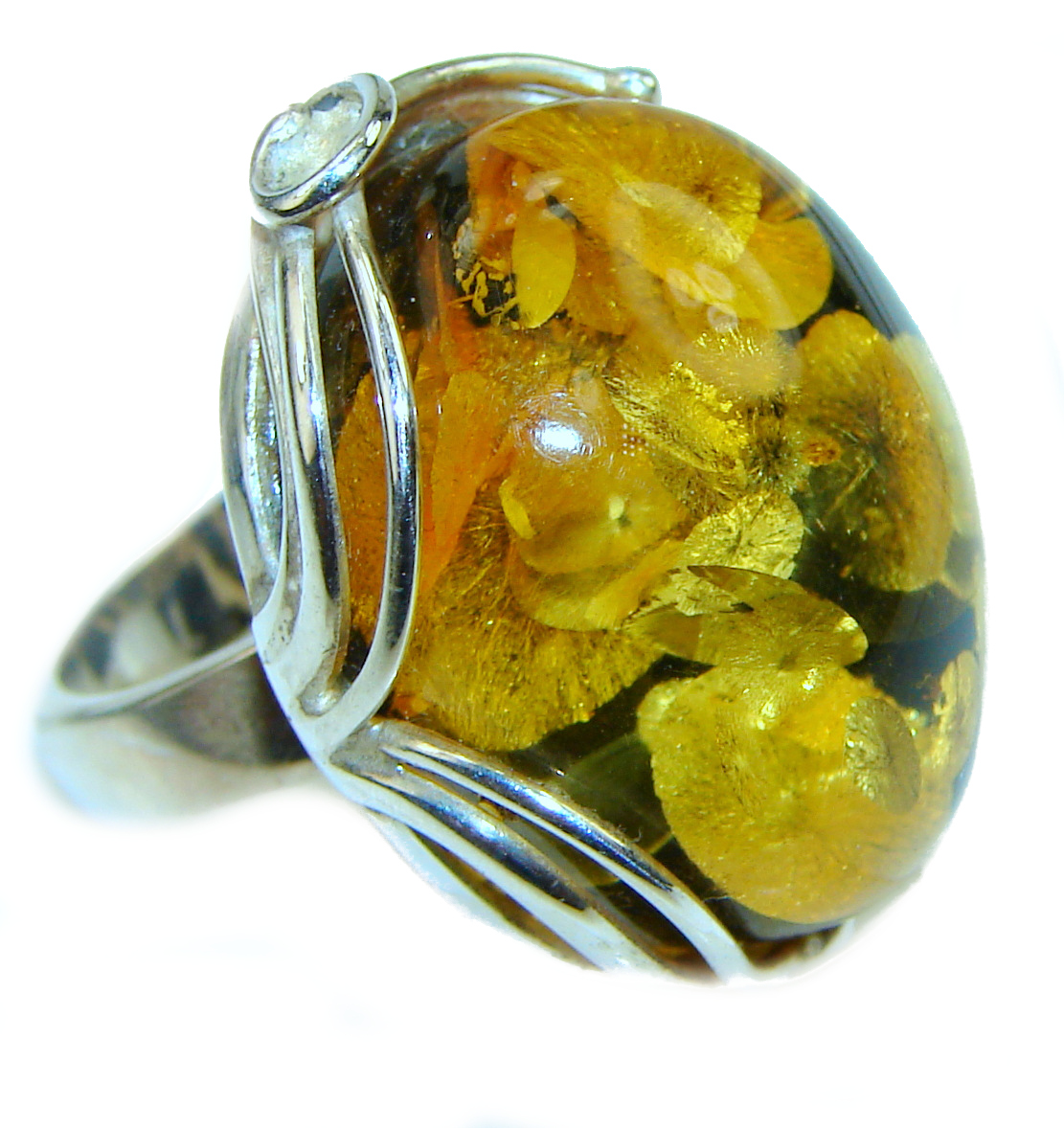 Huge Authentic Baltic Amber .925 Sterling Silver handcrafted ring; s. 7 adjustable