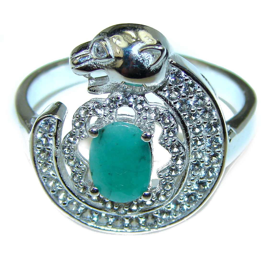 Panther Authentic Emerald .925 Sterling Silver handmade Ring s. 9