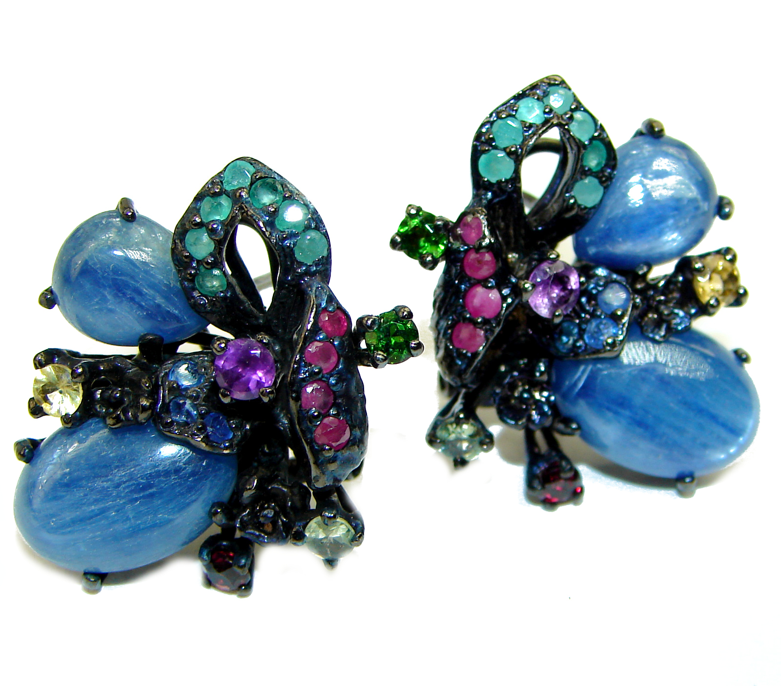 Best quality African Kyanite black rhodium over .925 Sterling Silver handcrafted earrings