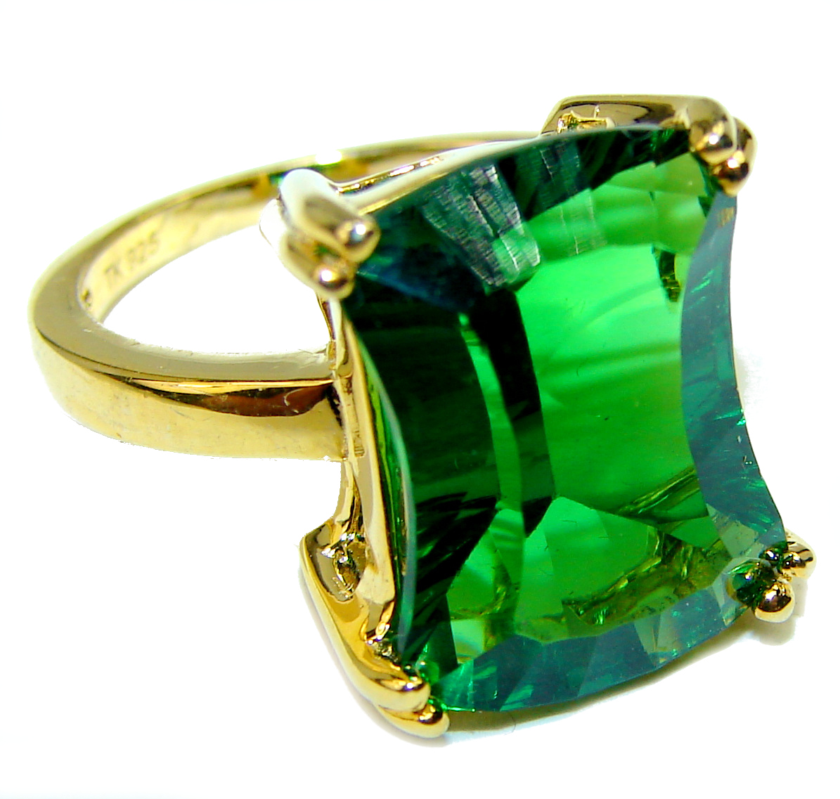 Authentic volcanic Green Helenite 18K Gold over .925 Sterling Silver HUGE ring s. 7 1/4