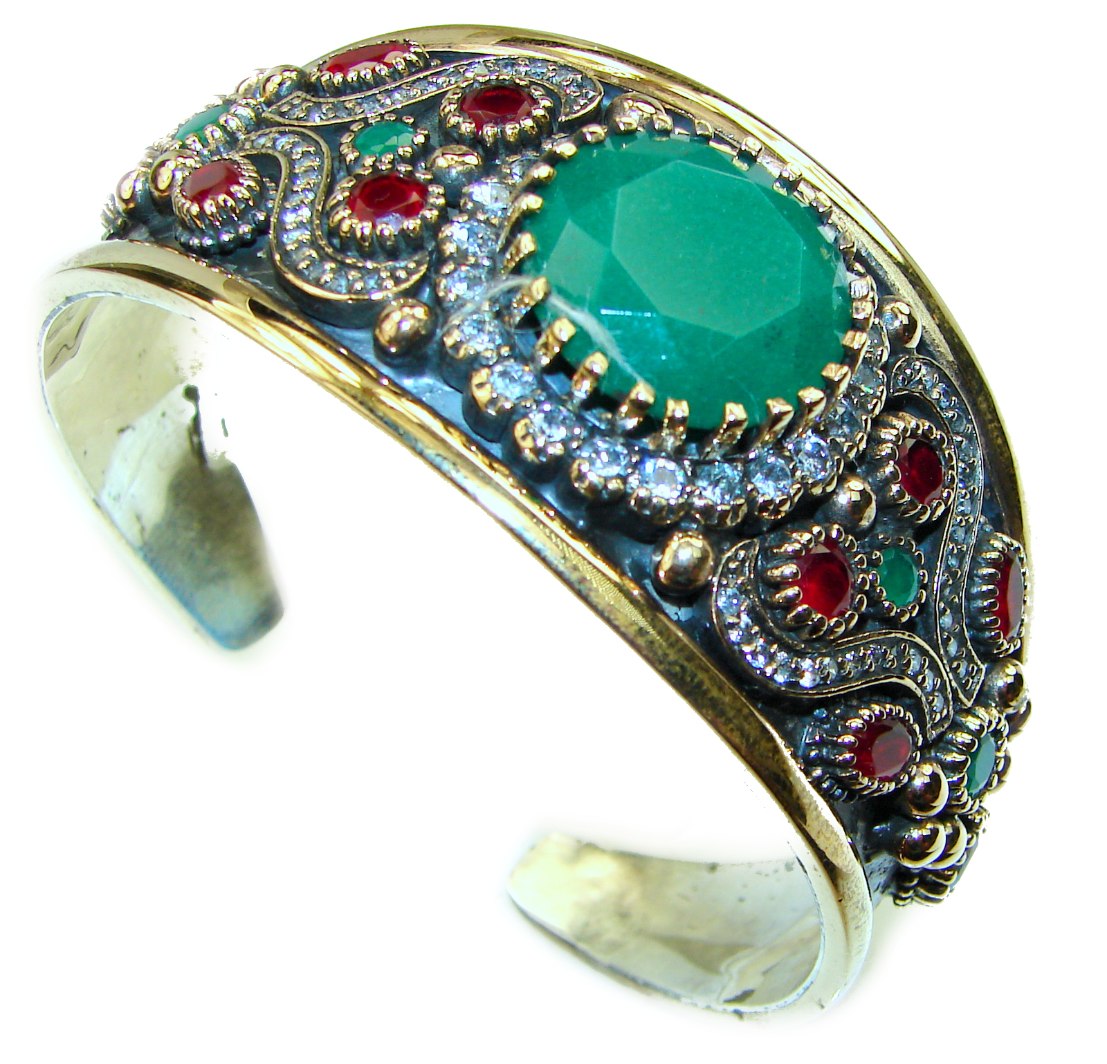 Victorian Style Created Emerald & White Topaz Sterling Silver Bracelet / Cuff