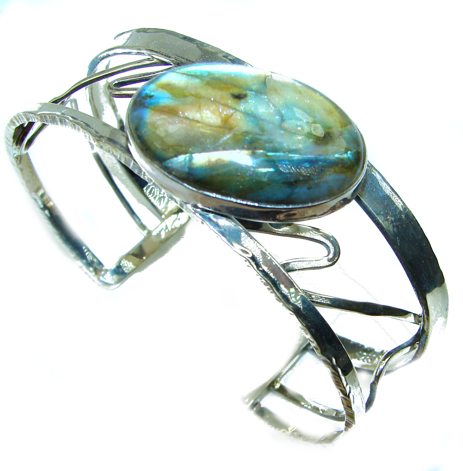 Beautiful Modern Shimmering Labradorite .925 Sterling Silver Bracelet / Cuff