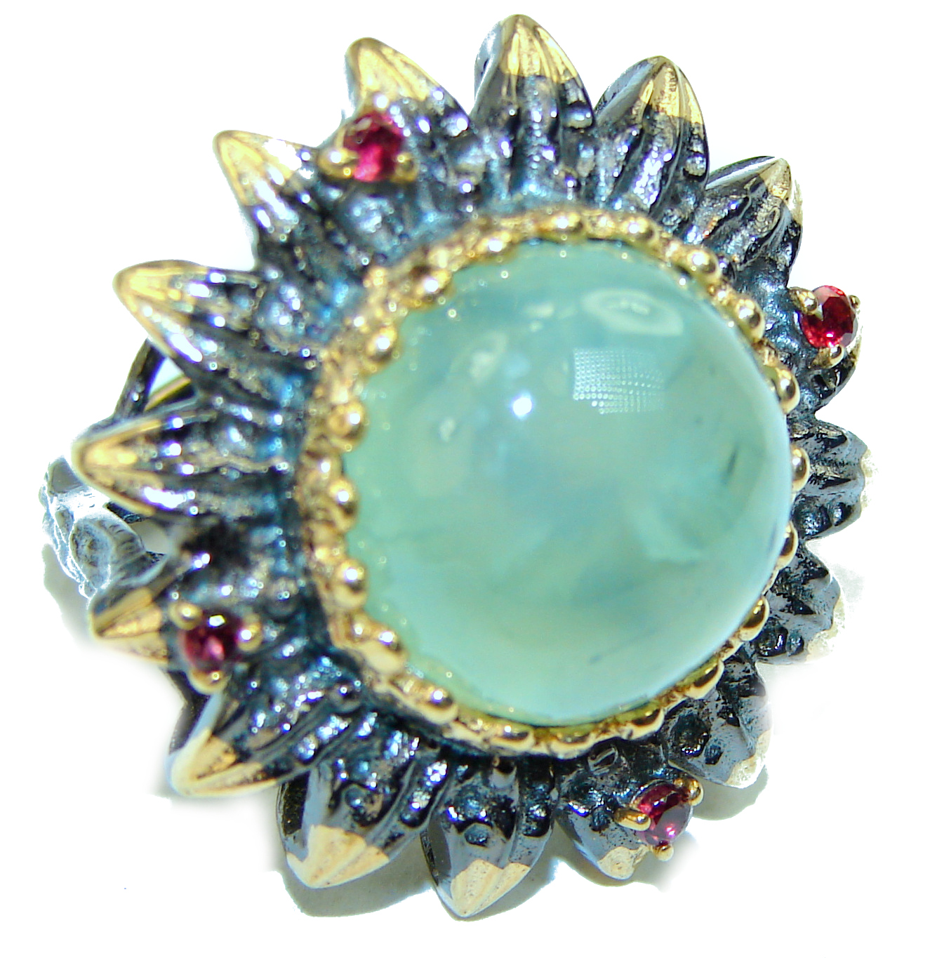 Vintage Design 5.2ctw Genuine Black Opal 14K Gold over .925 Sterling Silver handmade Ring size 7 3/4