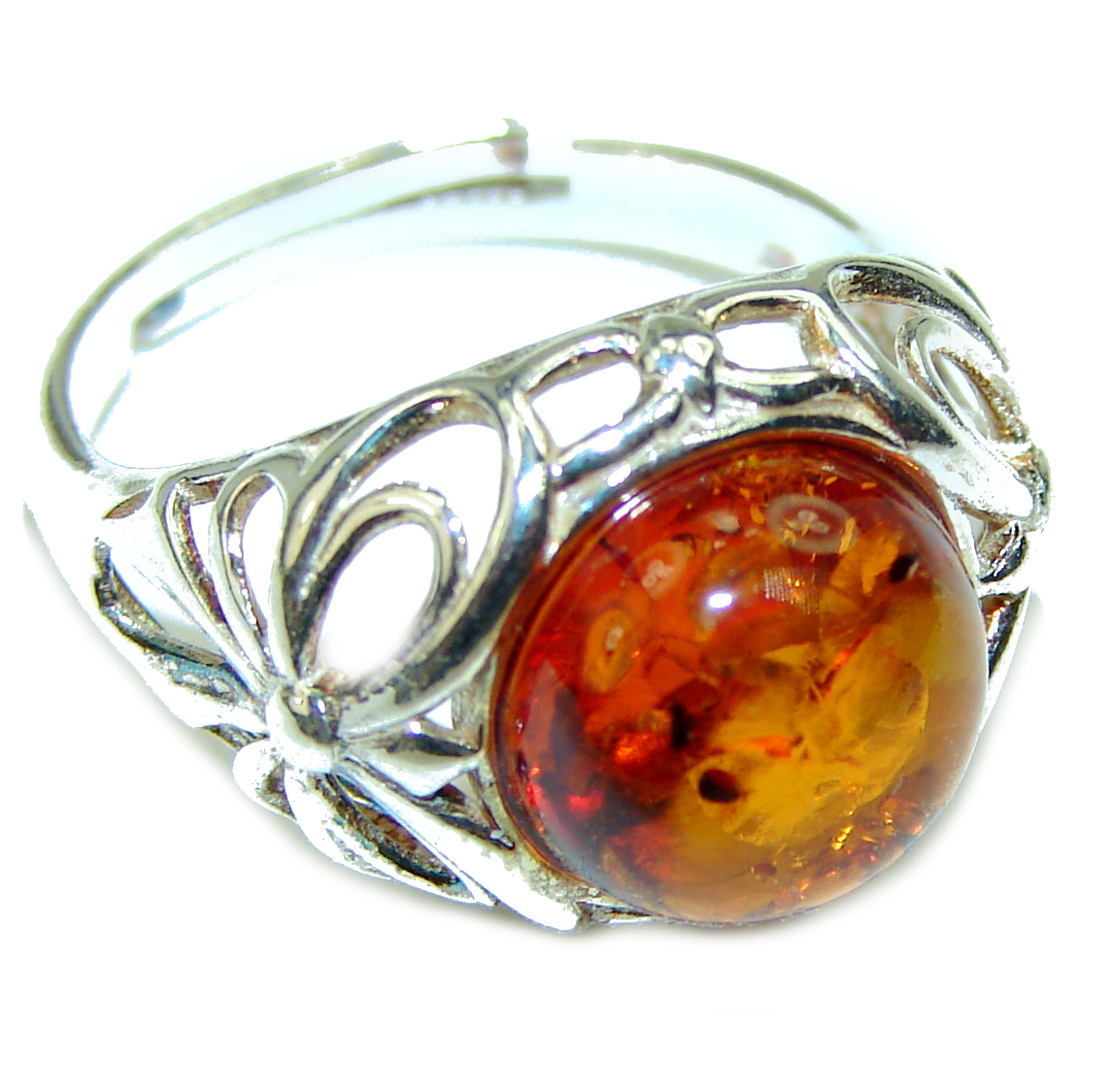 Authentic Baltic Amber .925 Sterling Silver handcrafted ring; s. 6 3/4