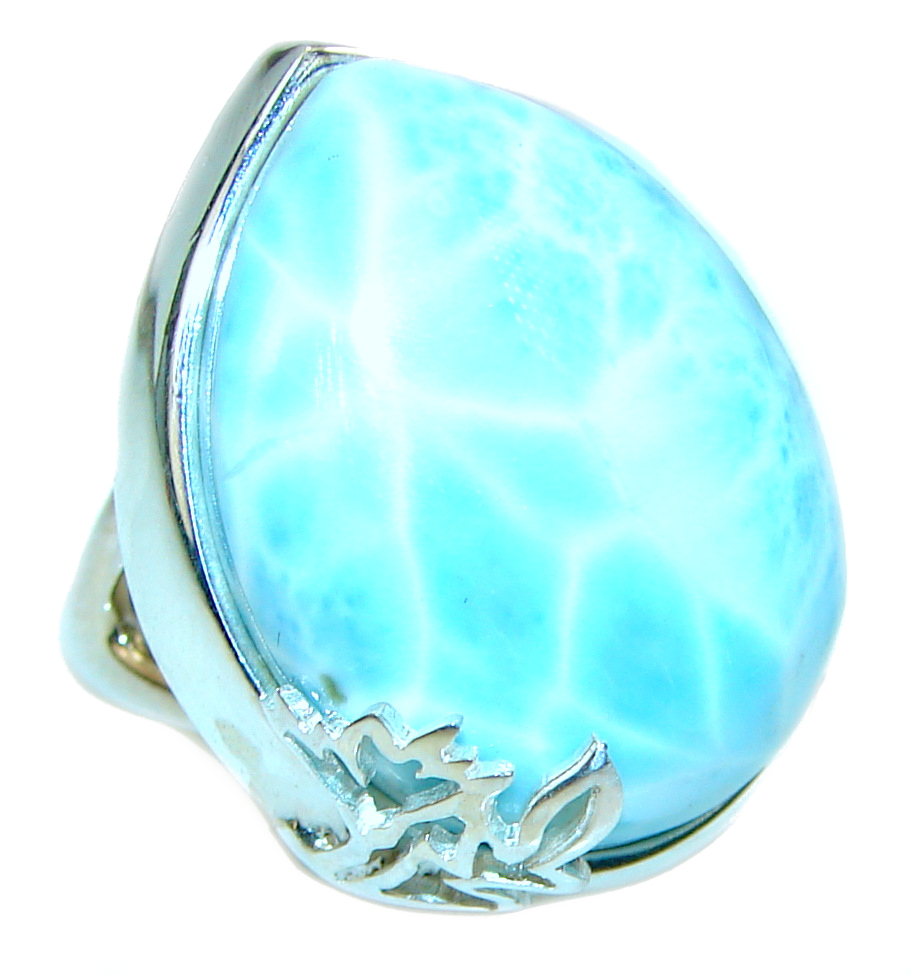 Precious Blue Larimar .925 Sterling Silver handmade ring size 8 adjustable