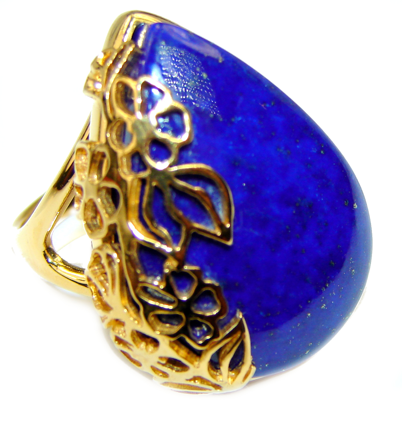 Natural Lapis Lazuli 14K Gold over .925 Sterling Silver handcrafted ring size 8