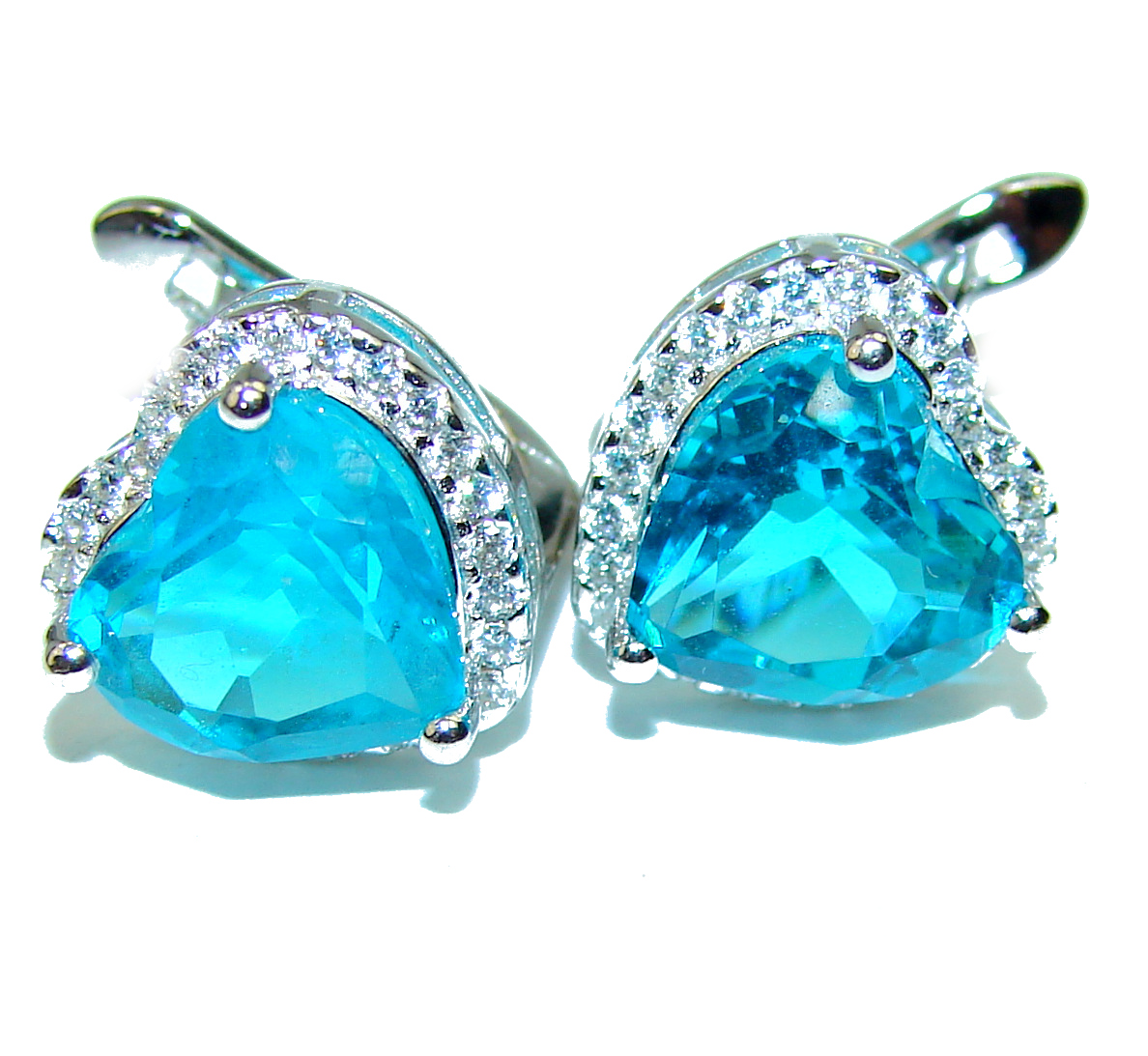 Blue hearts genuine Swiss Blue Topaz .925 Sterling Silver handcrafted earrings