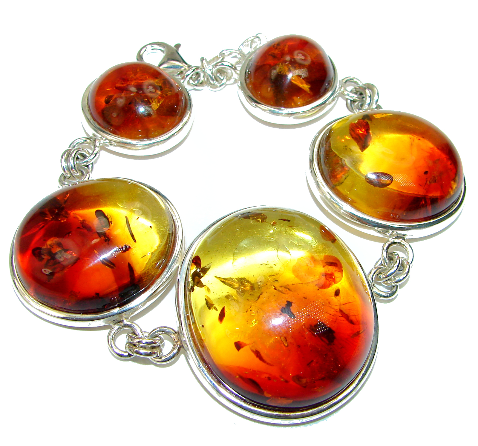 Large Beautiful Amber .925 Sterling Silver handcrafted Bracelet