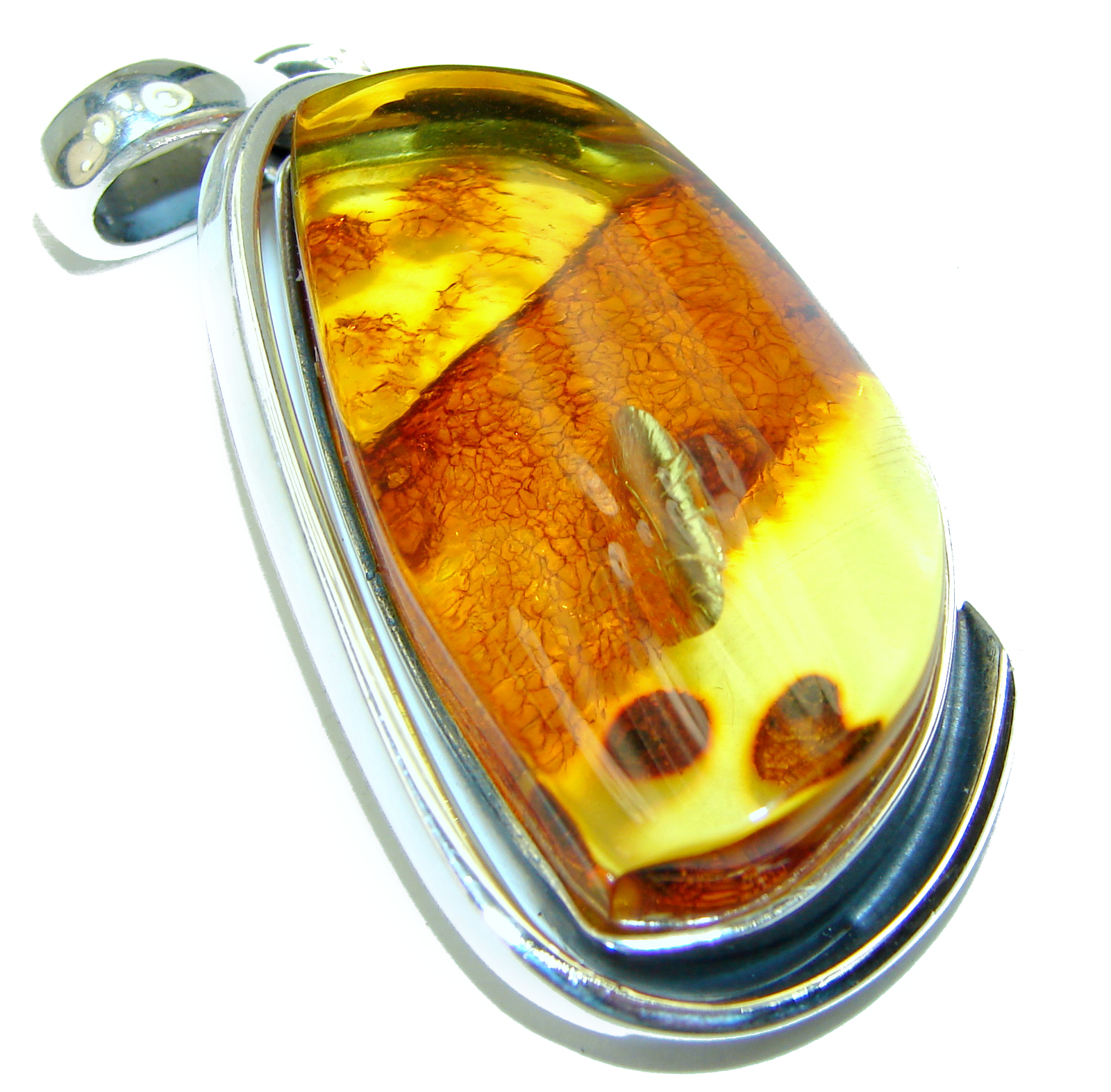 LARGE Golden Amber .925 Sterling Silver handmade Pendant