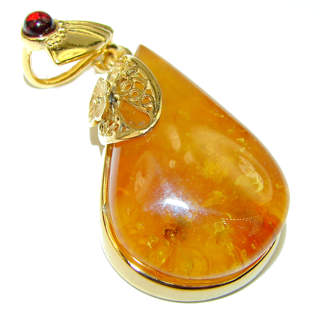 Natural Golden Amber 14k Gold over .925 Sterling Silver handmade Pendant