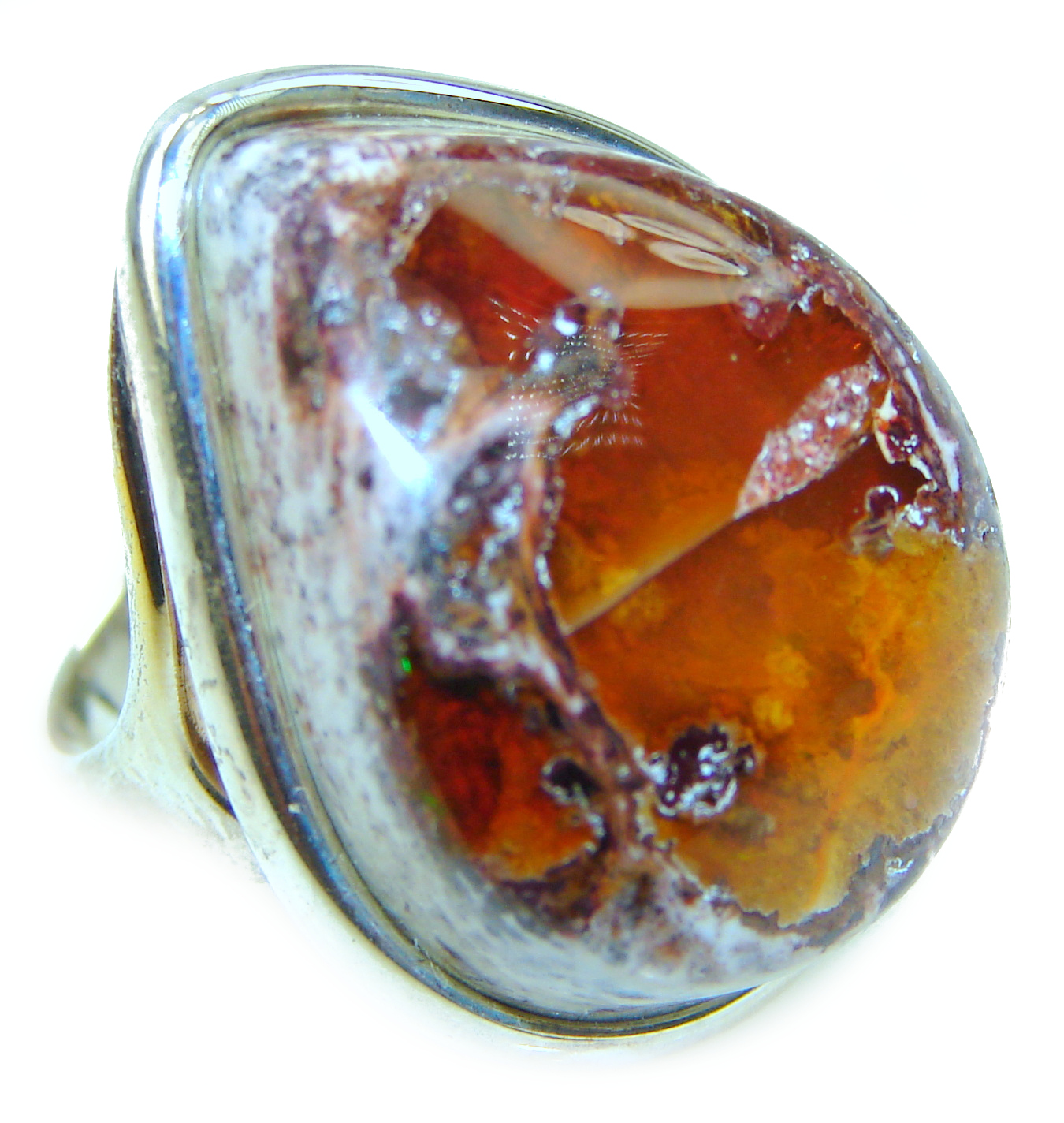Summer Day Mexican Opal .925 Sterling Silver handcrafted Ring size 7 1/4