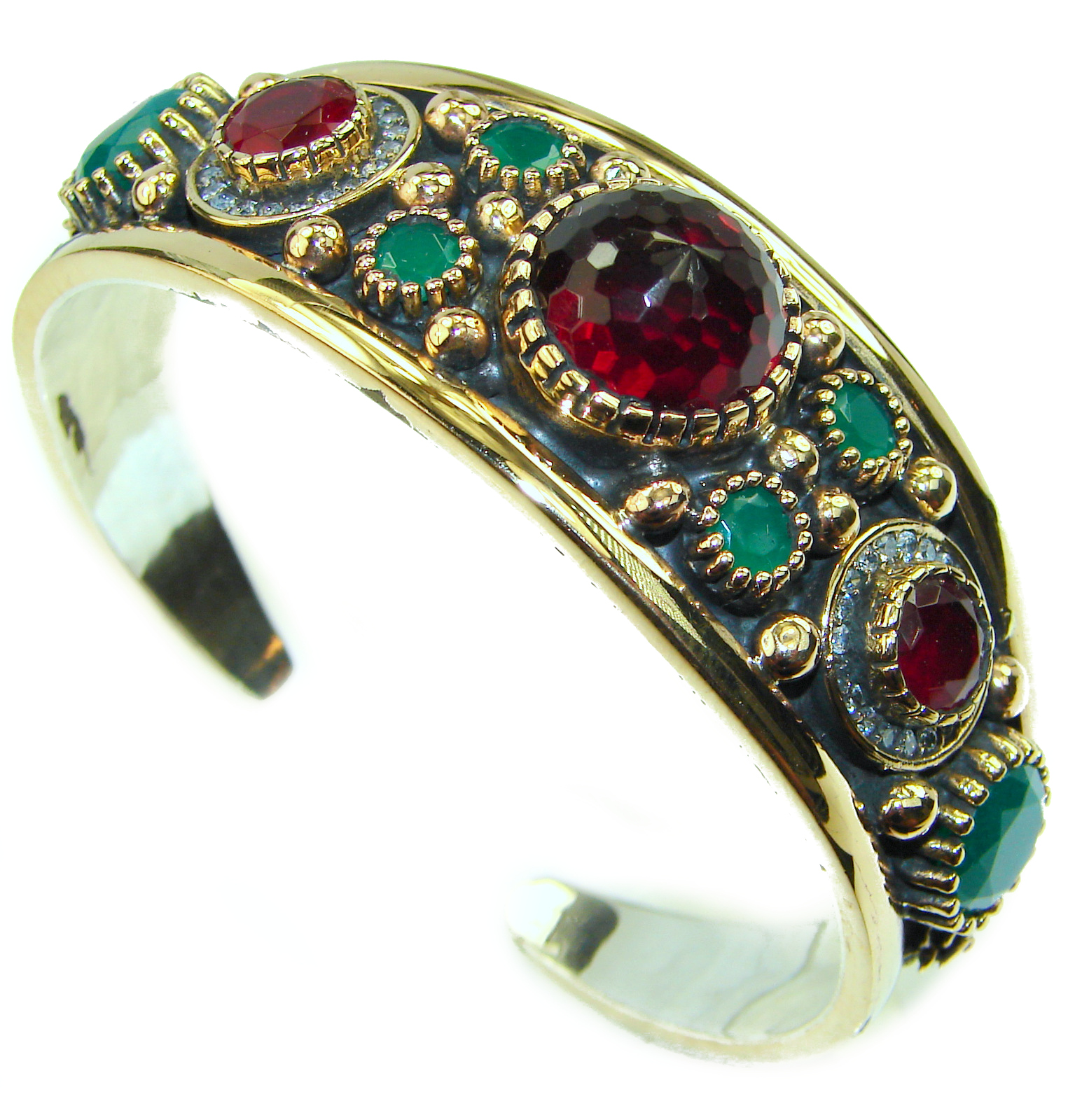Victorian Style Created Ruby & White Topaz Sterling Silver Bracelet / Cuff
