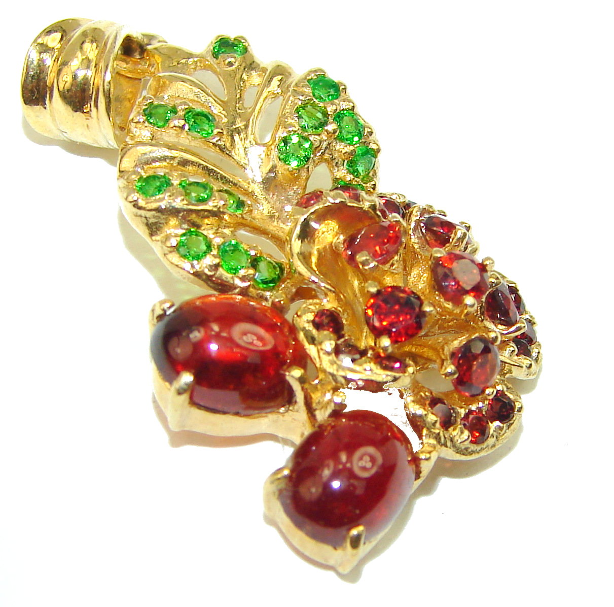 Classy Beauty genuine Garnet 14K Gold over .925 Sterling Silver handmade Pendant