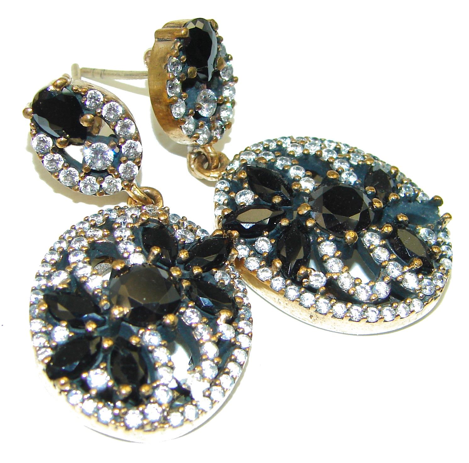Bold Vintage Design Ruby black rhodium Gold over .925 Sterling Silver earrings