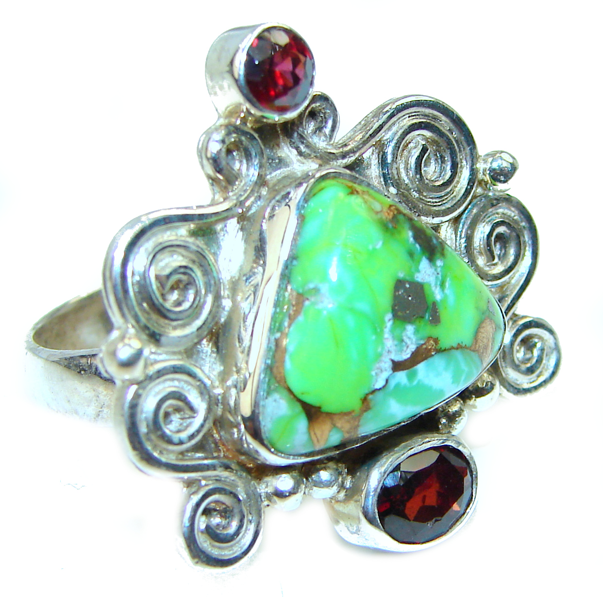 Green Turquoise .925 Sterling Silver handcrafted ring; s. 9