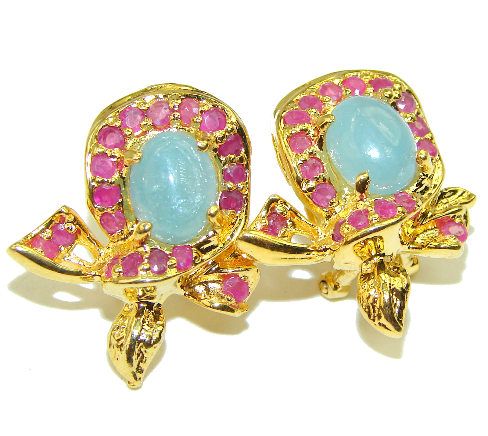 Authentic Aquamarine 14K Gold over .925 Sterling Silver handcrafted earrings