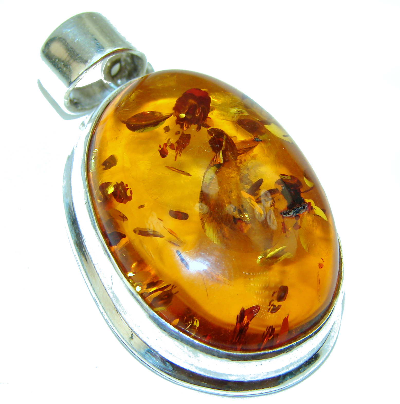Natural Golden Amber .925 Sterling Silver handmade Pendant