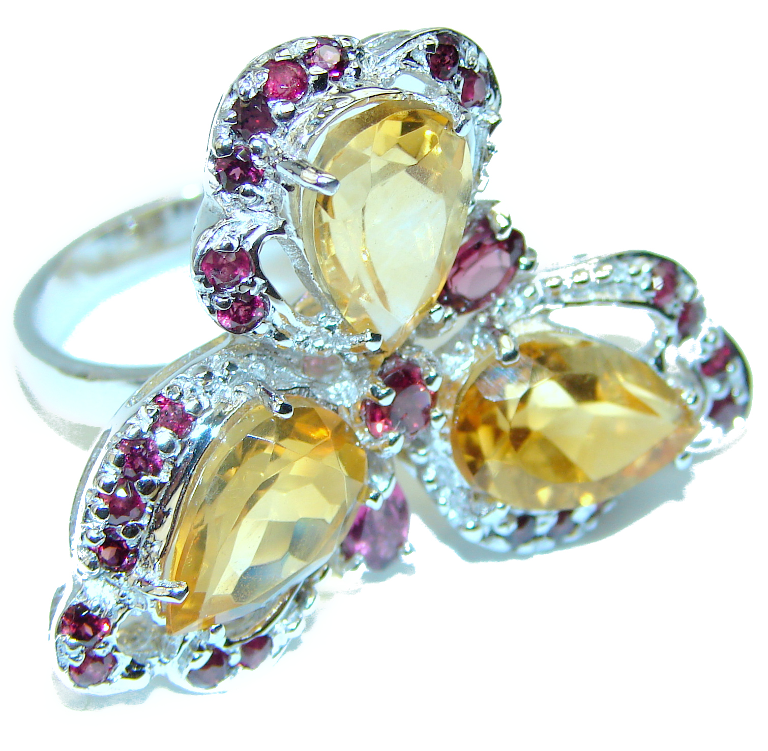 Vintage Style Citrine .925 Sterling Silver handmade HUGE Cocktail Ring s. 8