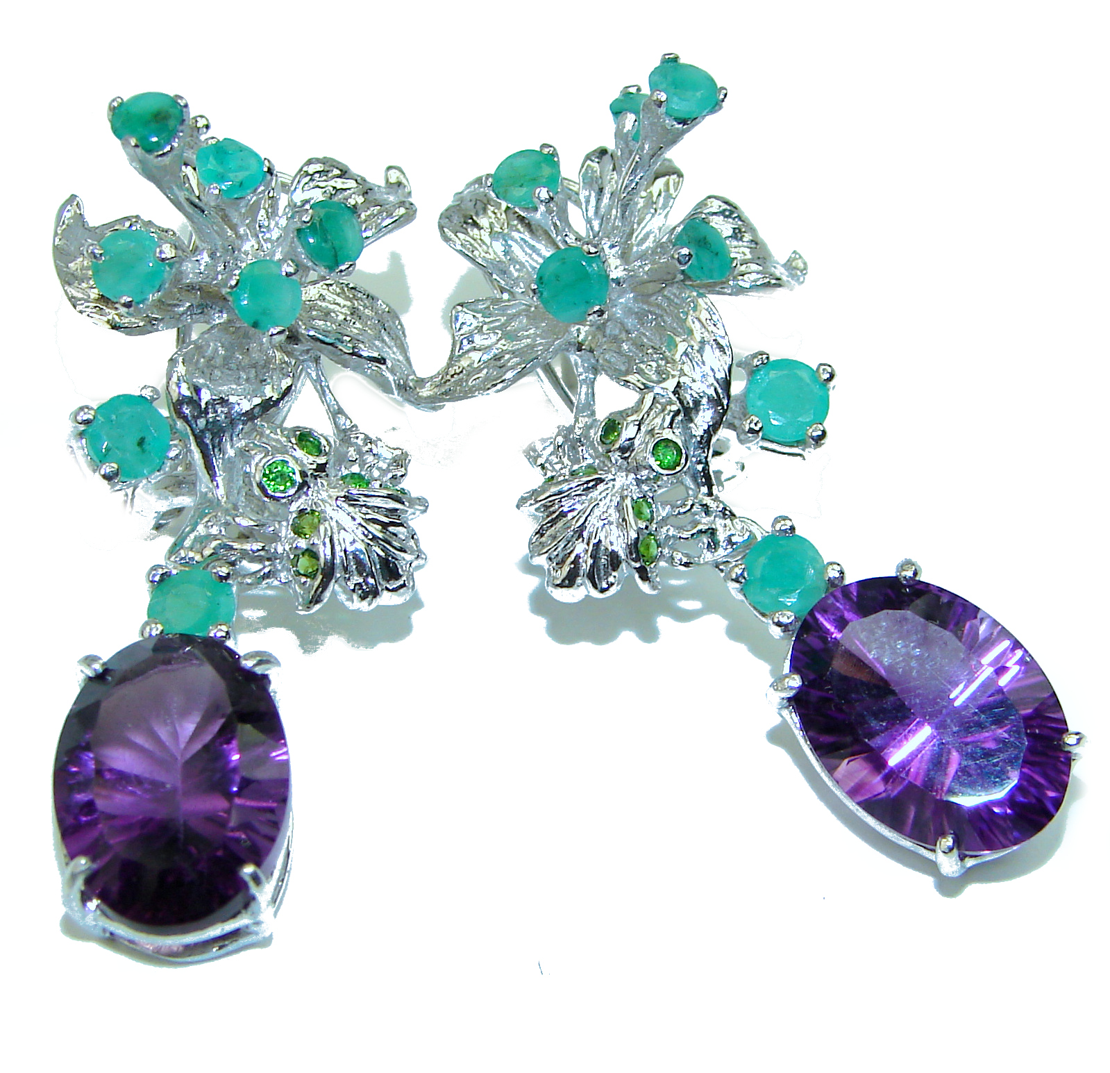 Large Amethyst Emerald .925 Sterling Silver handcrafted earrings