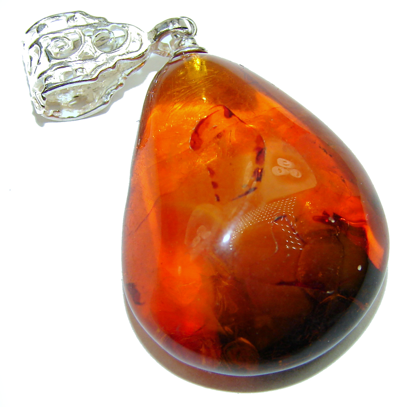 Ancient Treasure Genuine Baltic Amber .925 Sterling Silver handmade pendant