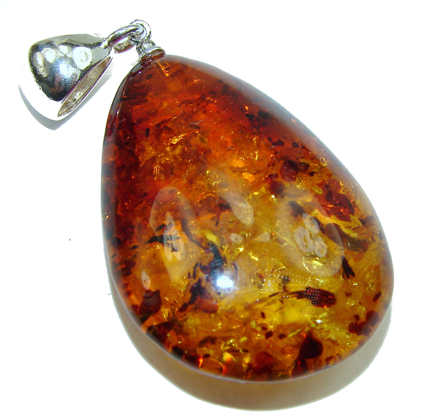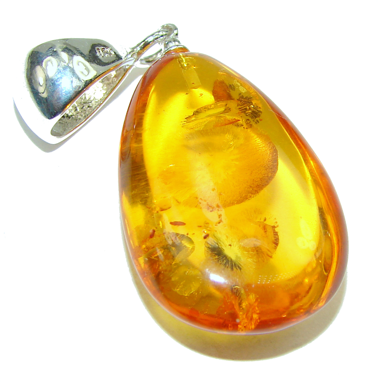 Ancient Drop Genuine Baltic Amber .925 Sterling Silver handmade pendant