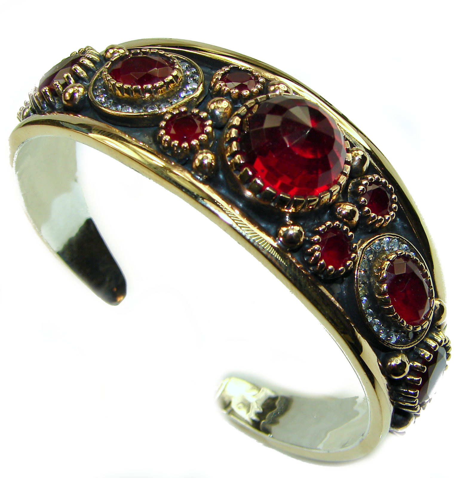 Victorian Style Created Ruby & White Topaz Sterling Silver Bracelet / Cuff