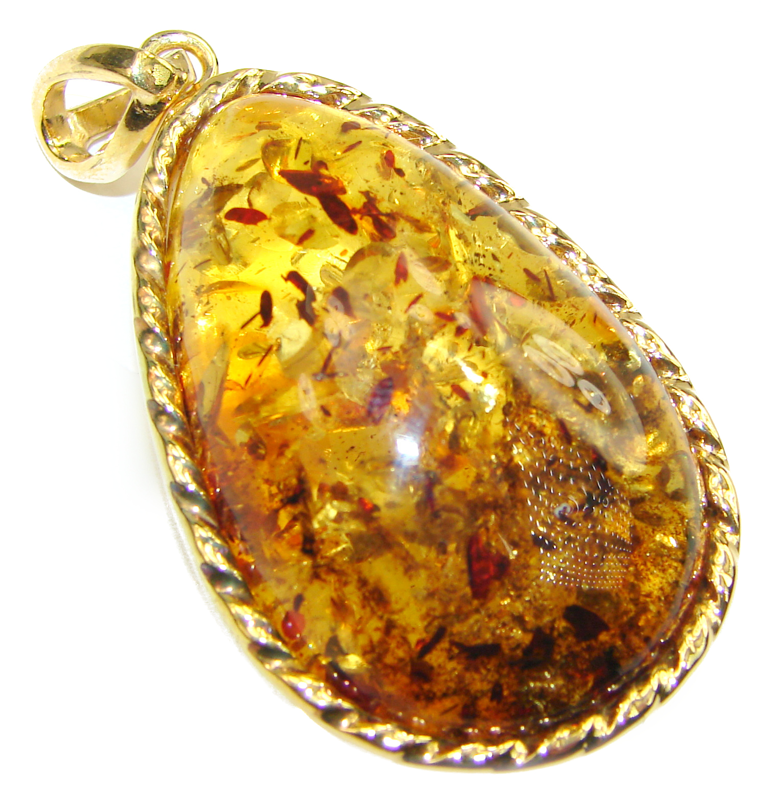 Vintage Beauty Natural Golden Amber 14K Gold over .925 Sterling Silver handmade Pendant