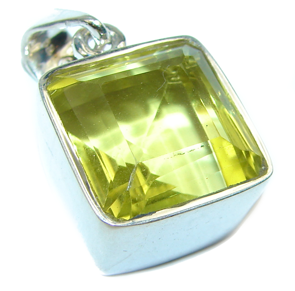 Oval cut 10.5 carat Genuine Lemon Quartz .925 Sterling Silver handcrafted pendant