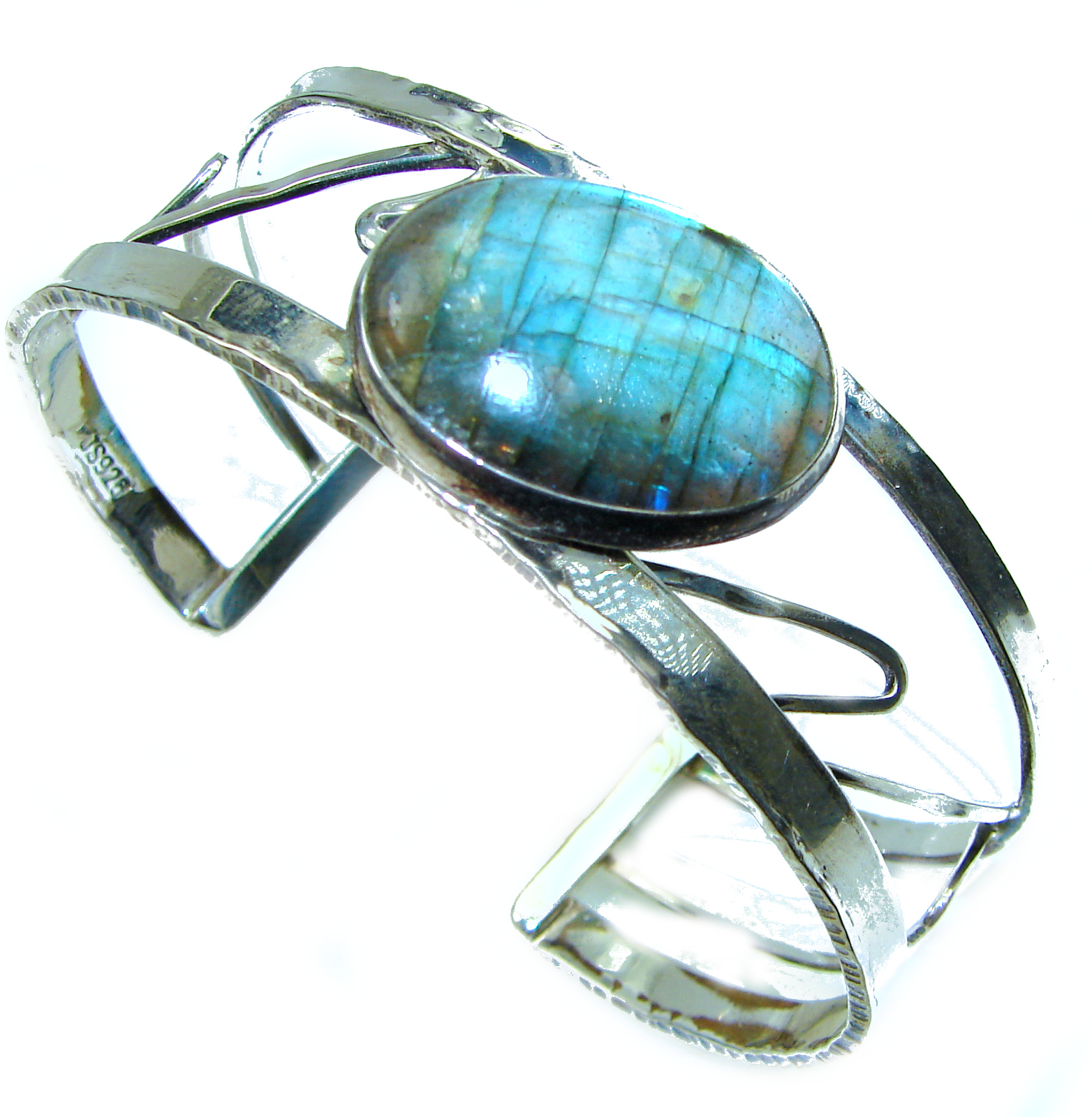 Beautiful Modern Shimmering Labradorite .925 Sterling Silver Bracelet / Cuff