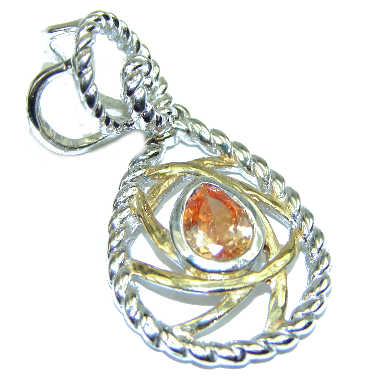 Modern Style Golden Topaz 14K Gold over .925 Sterling Silver handmade Pendant