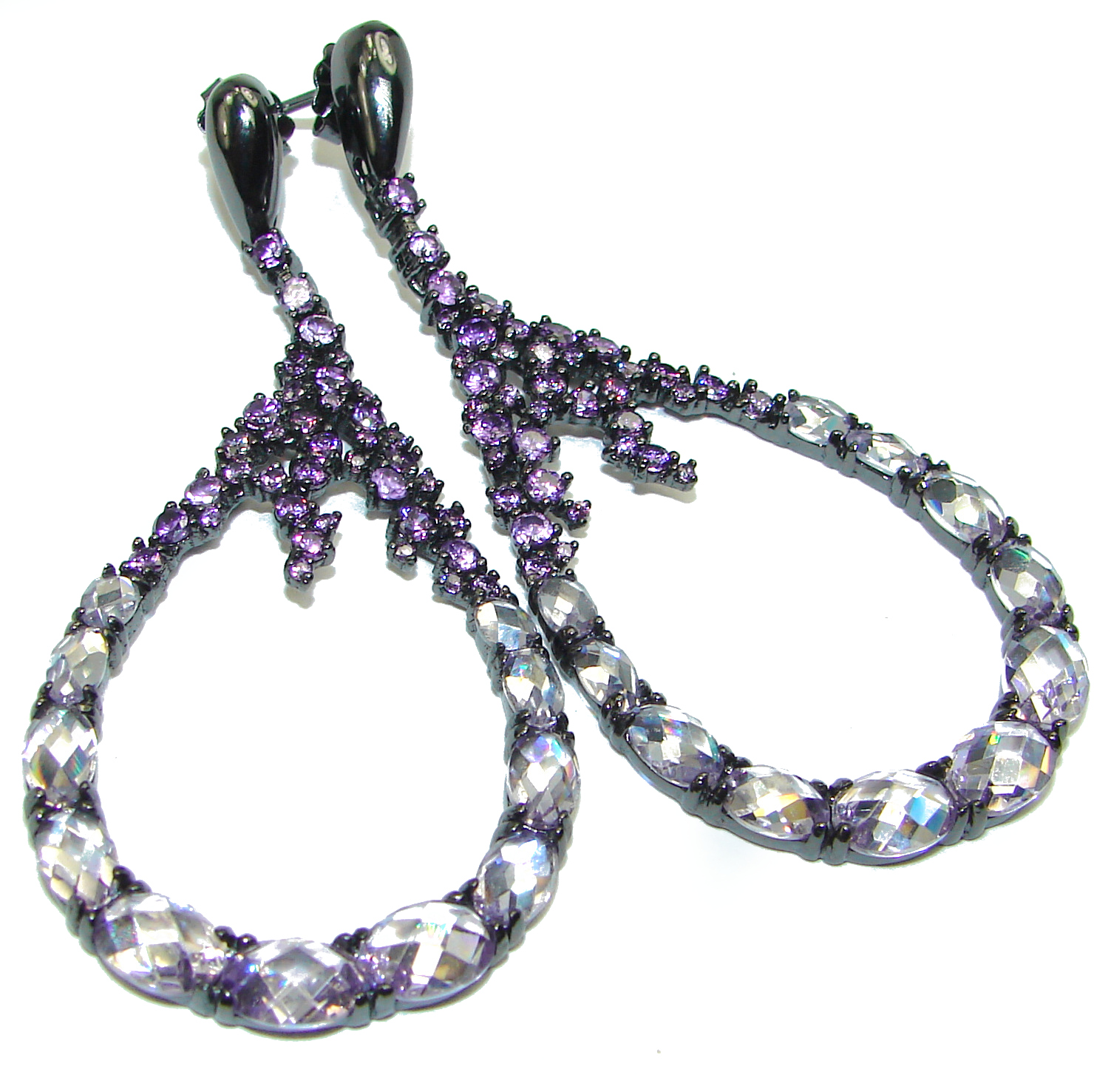 Exclusive Pink Amethyst Black rhodium over .925 Sterling Silver entirely handmade earrings