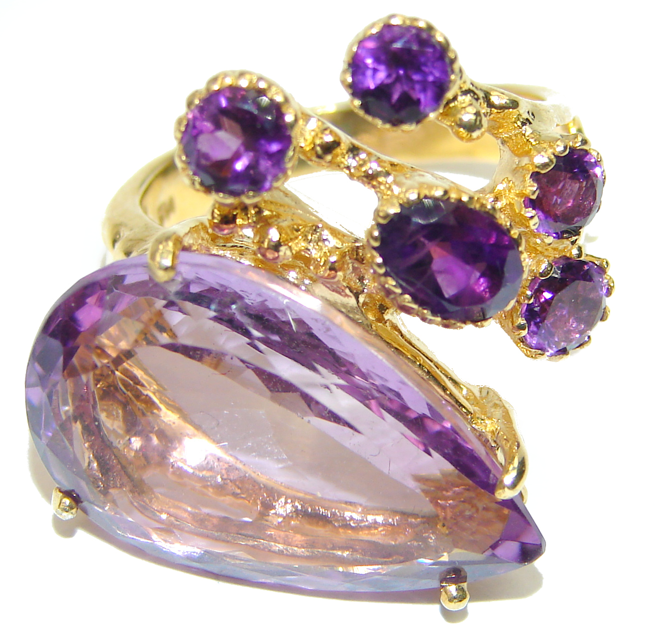 Incredible 15.7 carat African Amethyst 14K Rose Gold over .925 Sterling Silver handcrafted ring size 8 3/4