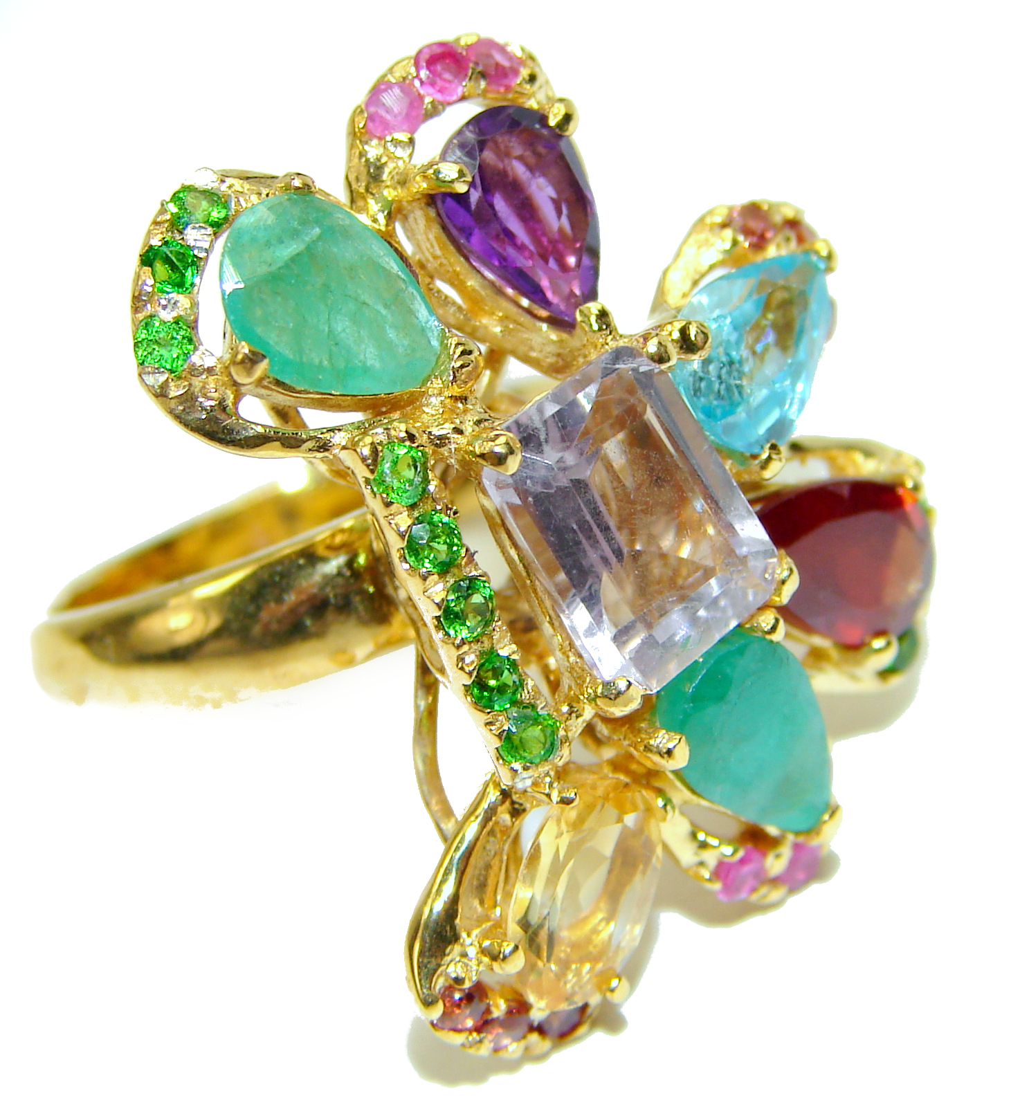 Summer Time authentic Multigem 14K Gold over .925 Sterling Silver handcrafted ring size 8 1/2