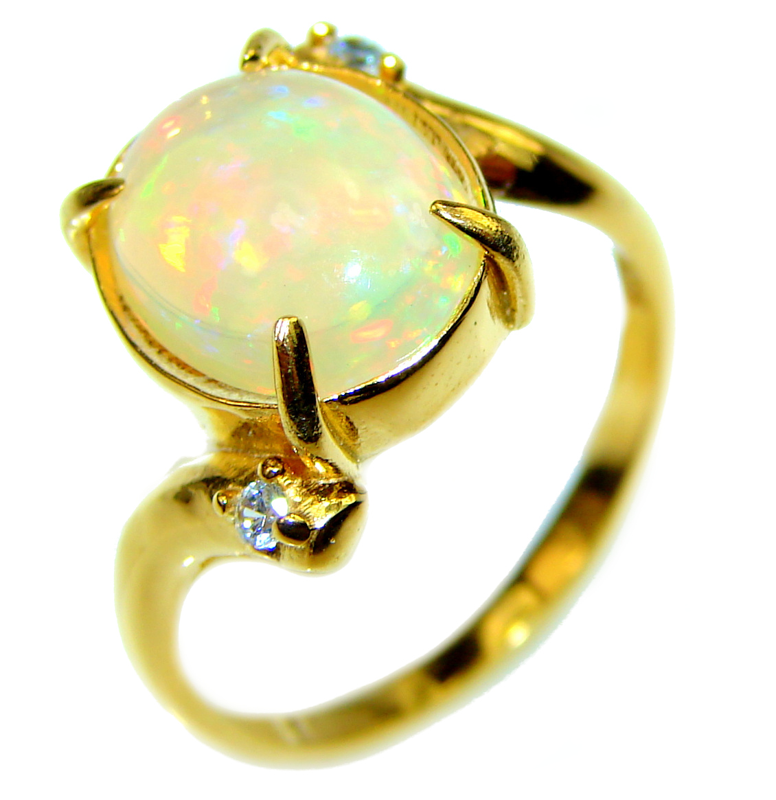 6.5 carat Ethiopian Opal 18k yellow Gold over .925 Sterling Silver handcrafted ring size 6 1/2