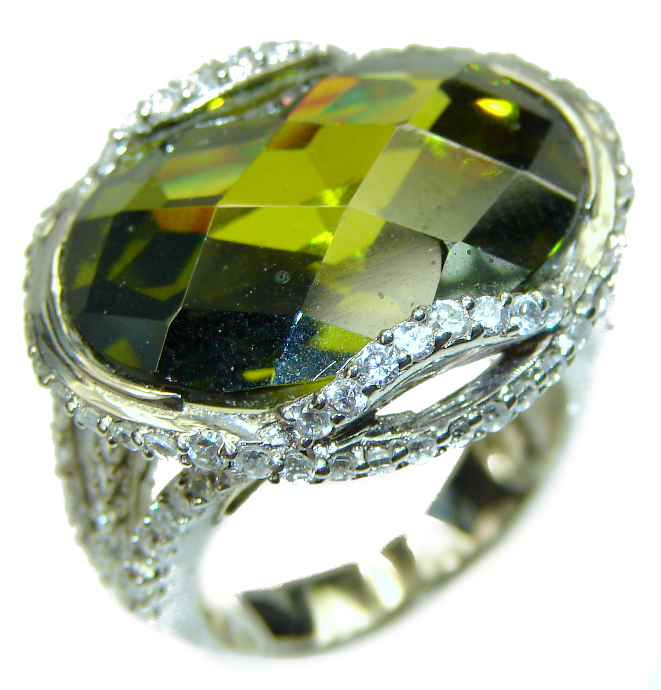 Large Best quality Green Topaz .925 Sterling Silver handcrafted Ring Size 7