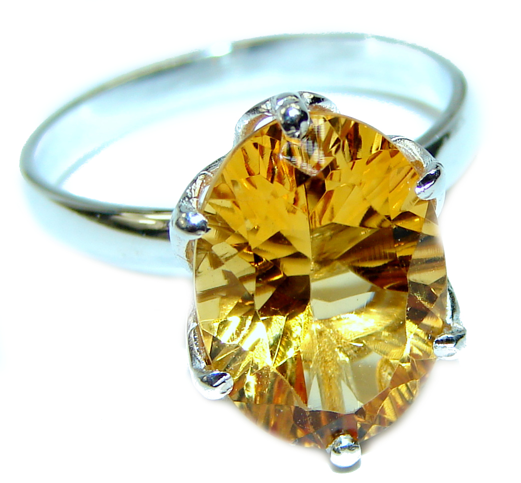 Luxurious Style 6.6 carat Natural Citrine .925 Sterling Silver handmade Cocktail Ring s. 8
