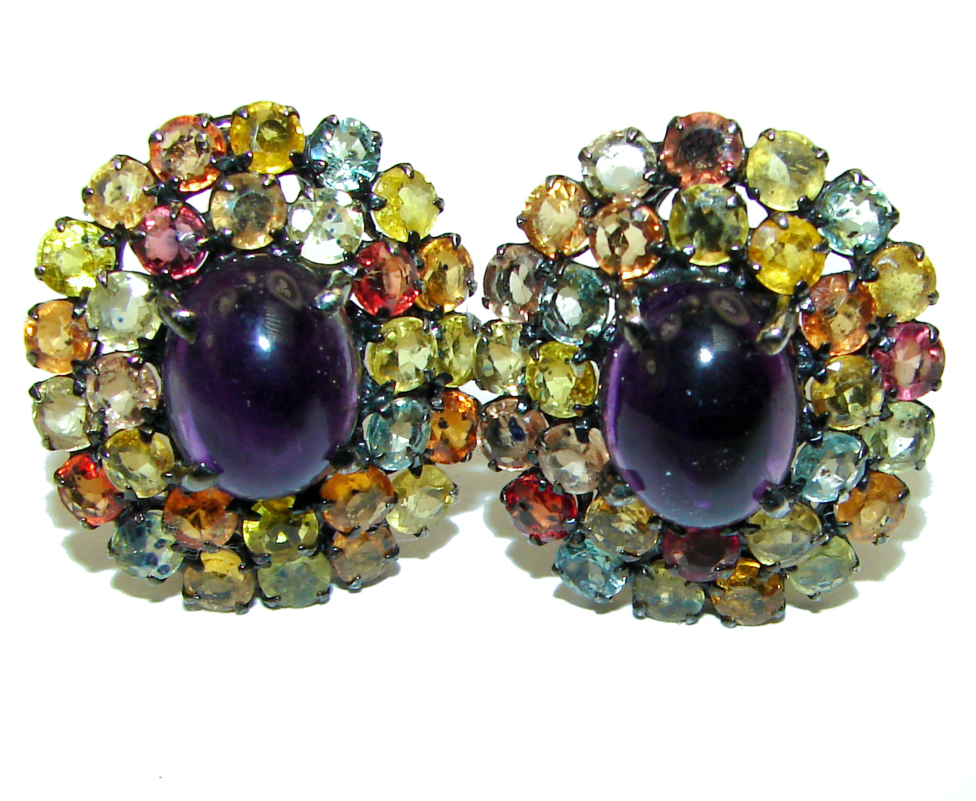 Very Unique Amethyst Sapphire black rhodium over .925 Sterling Silver handcrafted earrings
