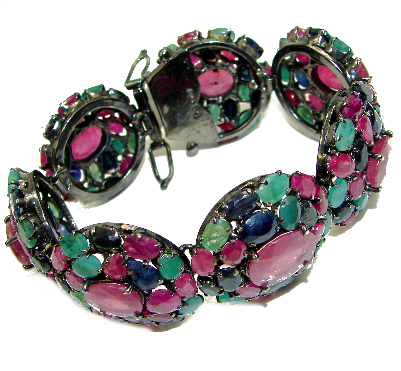 Luxurious Style Authentic Ruby black rhodium over .925 Sterling Silver handmade Large Bracelet