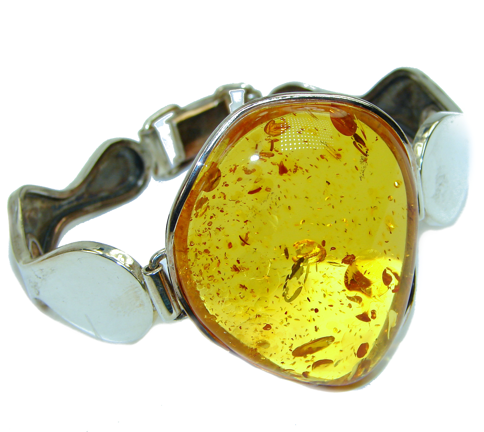 Vintage Design Genuine Polish Amber .925 Sterling Silver handamde Bracelet / Cuff