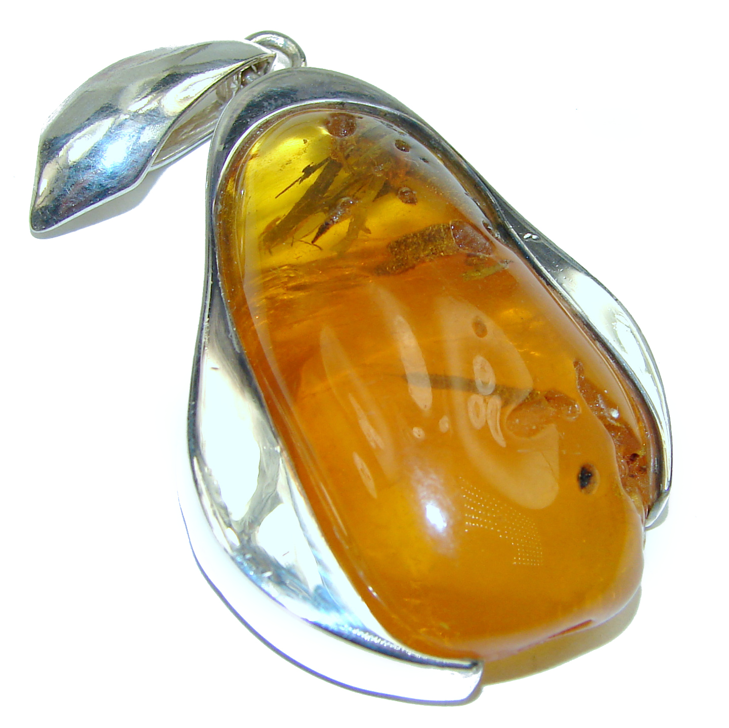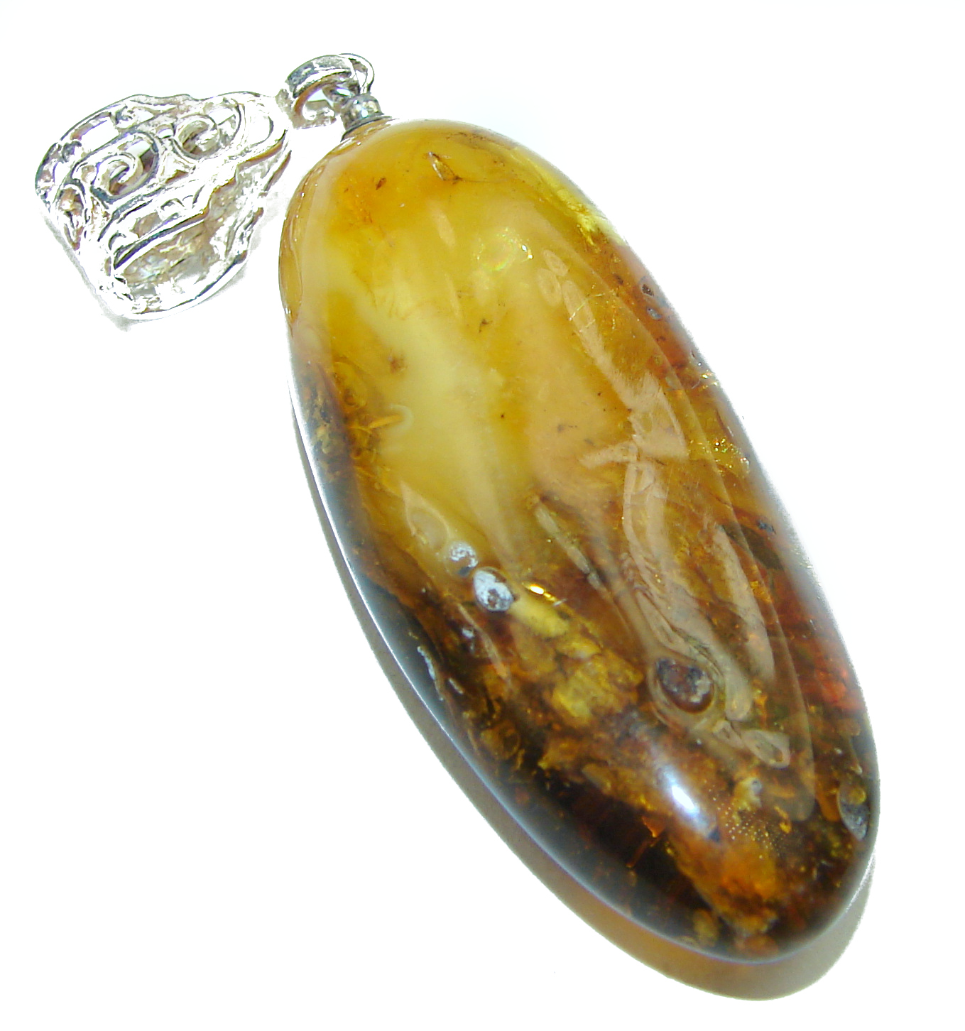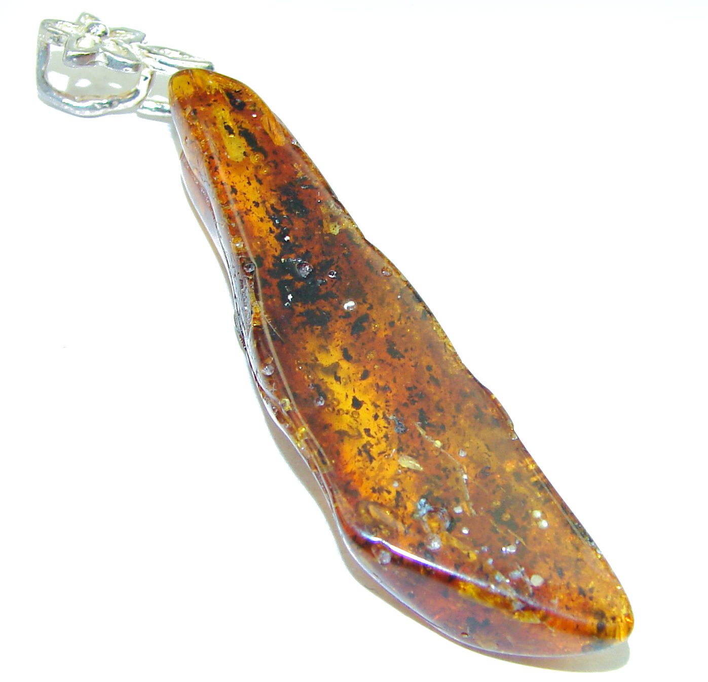 HUGE Prehistoric Genuine Baltic Amber .925 Sterling Silver handmade pendant