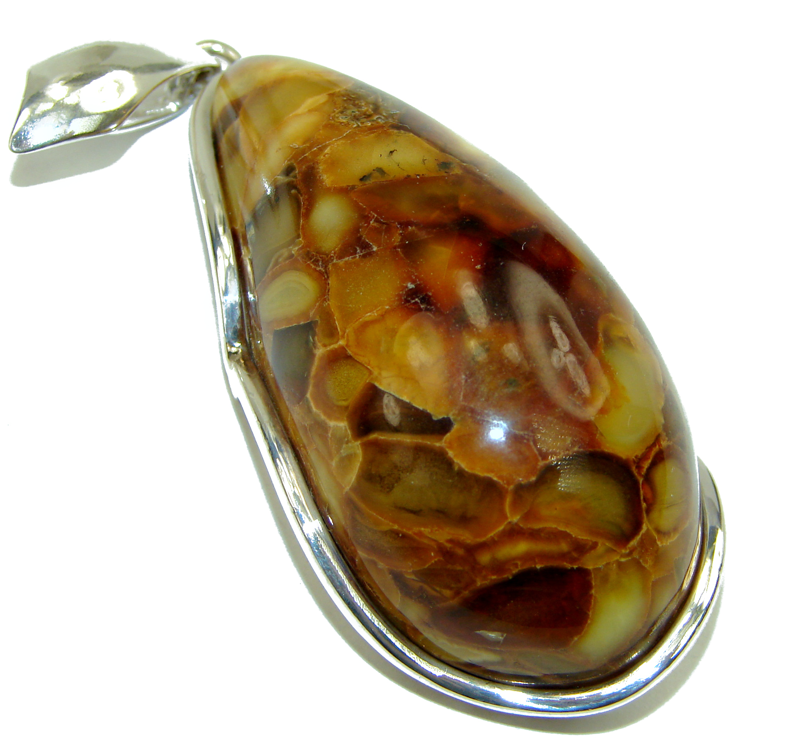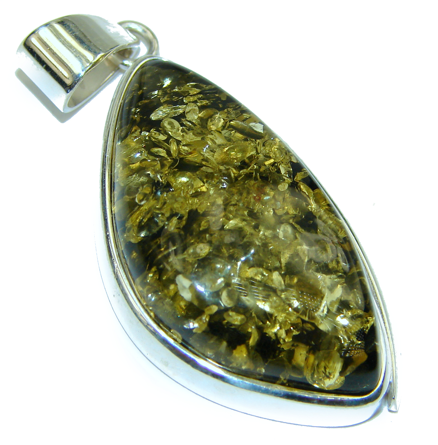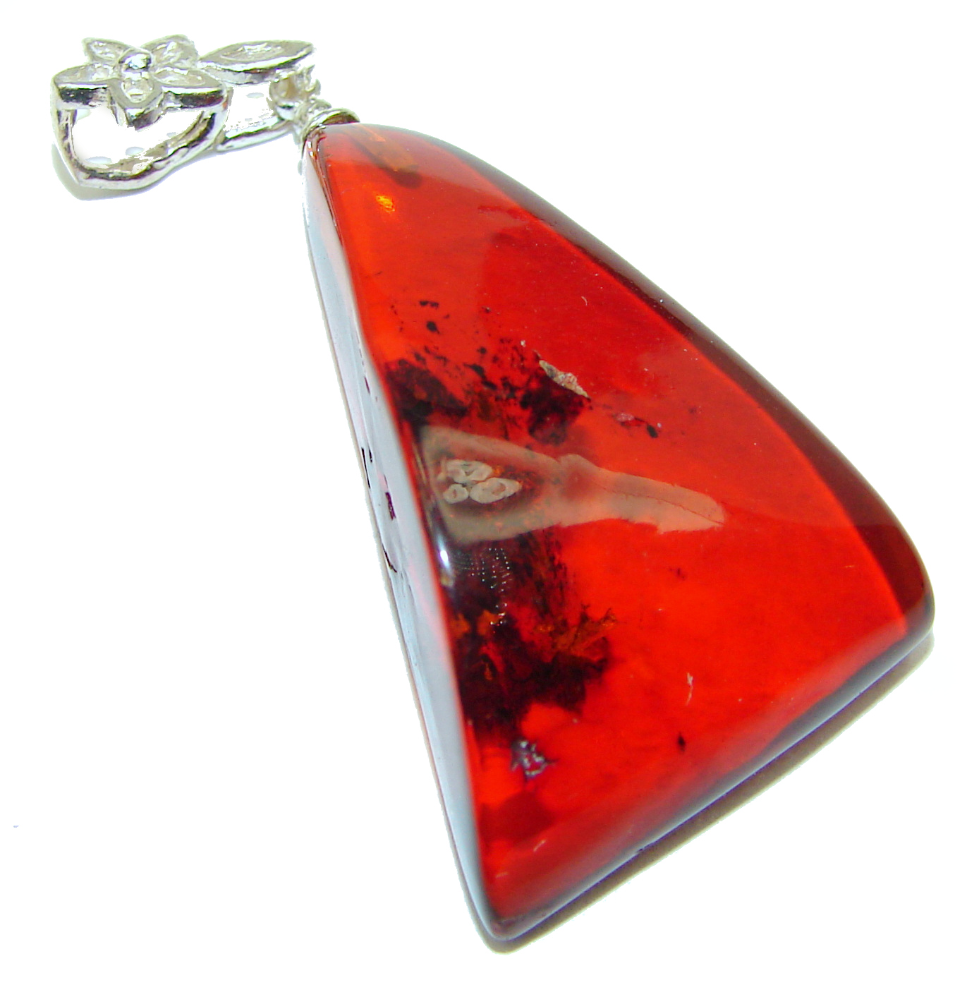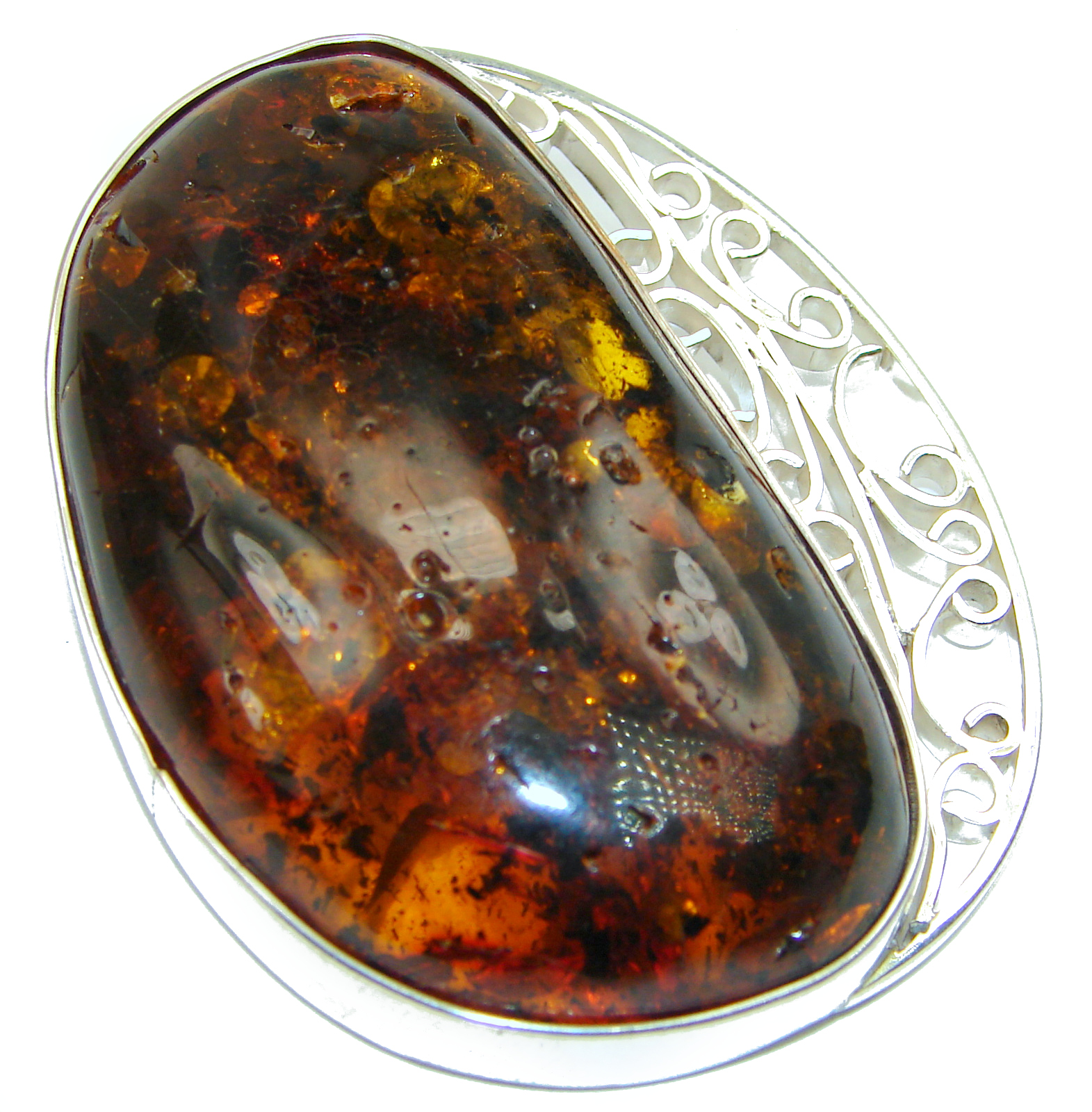 HUGE Prehistoric Genuine Baltic Amber .925 Sterling Silver handmade pendant