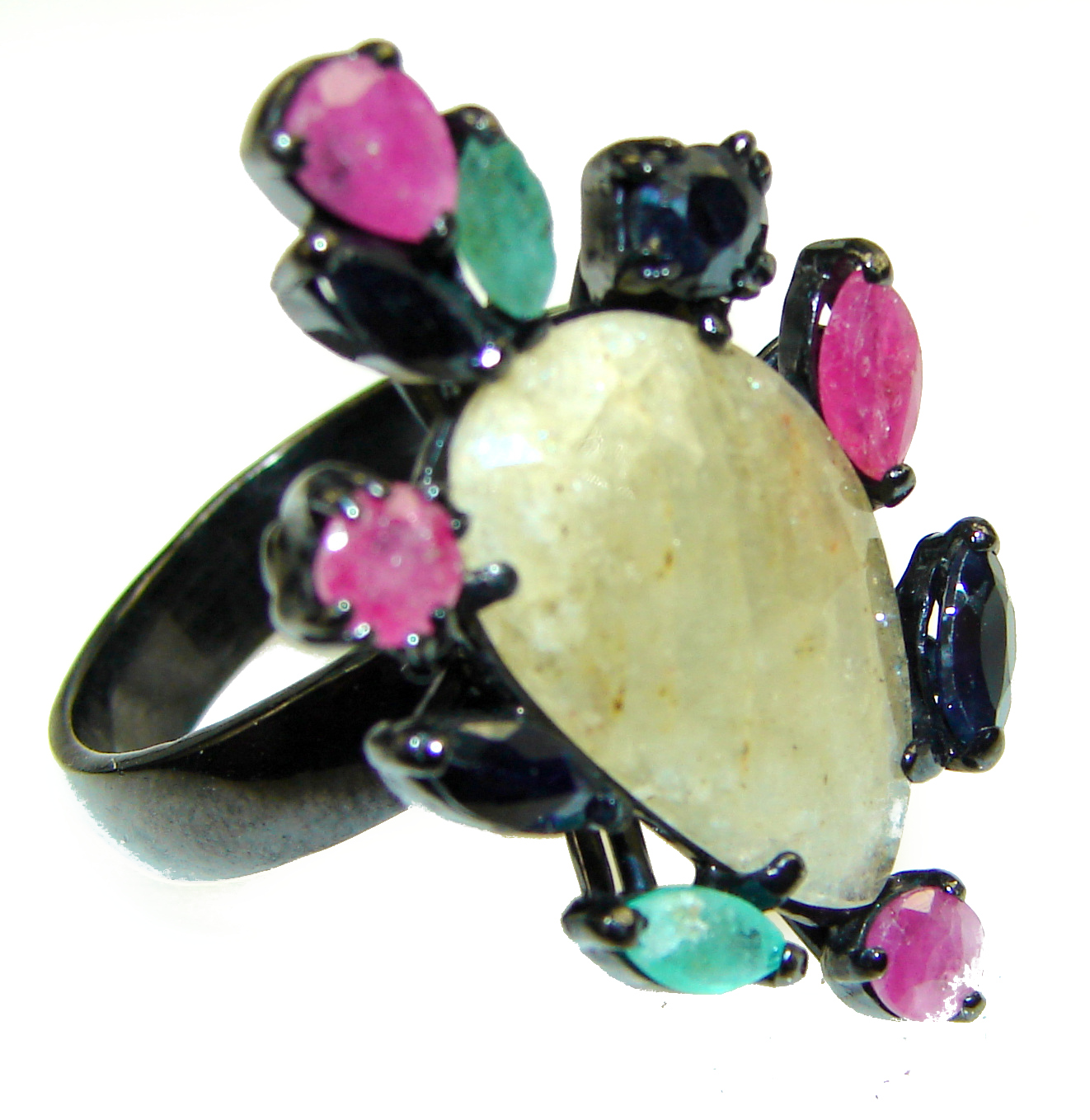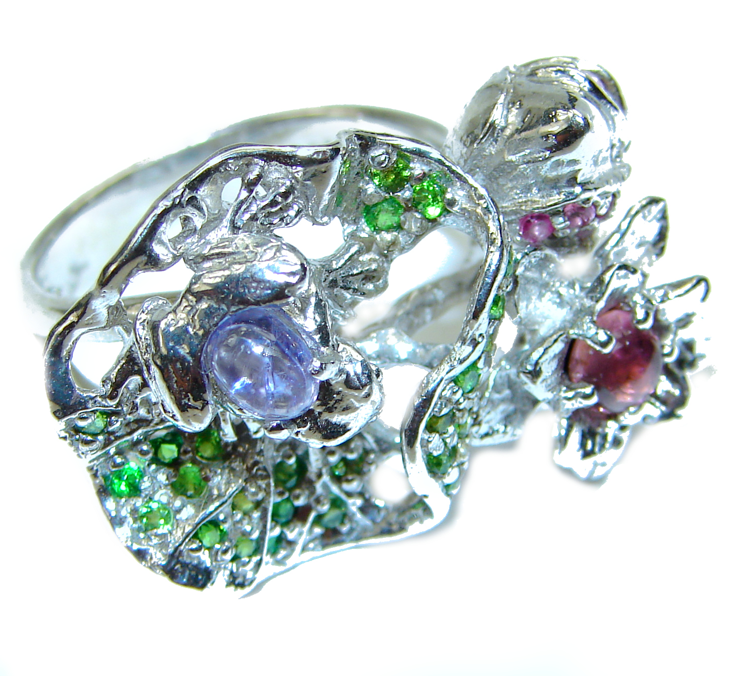 Vintage Design GENUINE Multigem .925 Sterling Silver handcrafted ring size 8 1/4