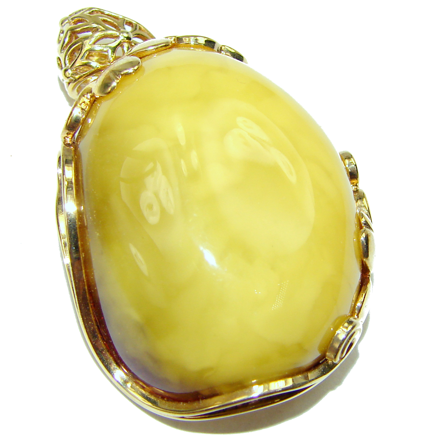 Genuine Butterscotch Baltic Amber 14K Gold over .925 Sterling Silver handmade pendant