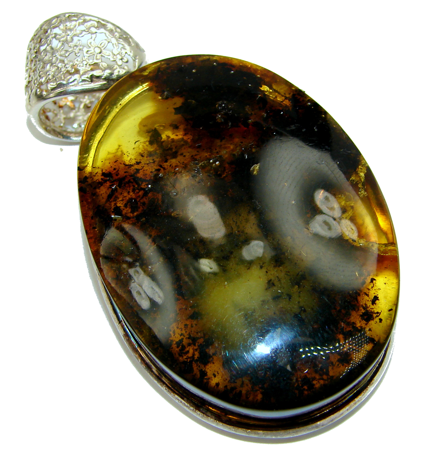 Large Genuine Baltic Amber .925 Sterling Silver handmade pendant